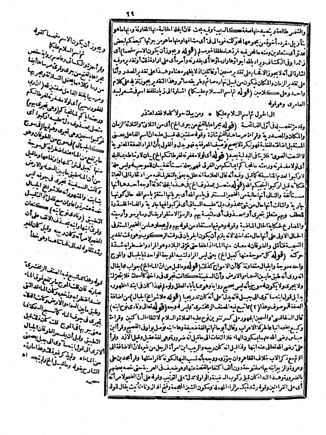 هو بمعزل عن الأمر إذا لم يفعله. قوله: (كسروا الياء ليدلّ على ياء الاضافة المحذوفة في جع القرآن) أي هنا وفي يوسف وثلاثة مواضع في لقمان، وفي الصافات، وقوله: وقف مليها أي سكنها، وعاصم عطف على ابن كثير، وقوله: اقتصارأ على الفتح من الألف المبدلة صن ياء الإضافة، وقيل: إنّ حذفها لالتقاء الساكنين ويؤيد الأوّل أنه قراً بها حيث لا ساكن كدها. قوله: (وحفصى الخ) وروي عنه الاظهار في النشر أيضاً، وكلاهما صحيح. قوله: (أن كرقئي) من الأفعال، ويجوز أن يكون من التفعيل، فالعصمة عبارة عن حفظه عن الغرق. قوله: (1 لا الراحم وهو الله الخ) ذكروا فيه وجوها الأوّل لا عاصم إلا الراحم، وفيه إقامة الظاهر مقام المضمر، لأن الأصل لا عاصم من أمر الله إلا الله، وفي العدول إلى الموصول زيادة فخيم وتحقيق لرحمته، وأن رحمته هي المعتصم لا الجبل، وهو أقوى الوجوه، الثاني لا ذا عصمة أي لا معصوم إلا المرحوم، قيل: وفيه أن فاعلا بمعنى النسبة قليل، فإن أريد في نفسه فم! نوع، وان أريد بالنسبة إلى الوصف فلا يضرّ، الثالث الانقطاع على أن لا عاصم على الحقيقة، أي ولكن من رحمه الله فهو المعصوم، وأورد عليه أن مثل هذا المنقطع قليل، لأنه في الحقيقة جملة منقطعة تخالف الأولى، لا في النفي والاثبات فقط، والأكثر فيه مثل ما جاءني القوم إلا حمارا، الرابع لا معصوم إلا الراحم على معنى لكن الراحم يعصم من أراد، وهذا غير مصرّج به في الكشاف، ولكنه يظهر من تجويزه أن يكون من رحم هو الراحم، ولا عاصم بمعنى لا معصوم، الخامس إضمار المكان أي لا عاصم إلا مكان من رحمه الله، وهو السفينة، وهو وجه حسن فيه مقابل لقوله: يعصمني، وهو المرجح بعد الأوّل، والعاصم على هذا حقيقة، لكن إسناده إلى المكان مجازي، وقيل إنه مجاز مرسل عن مكان الاعتصام بناء على إسناد الفعل إلى المكان إسناداً مجازيا والمعنى لا مكان اعتصام إلا مكان من رحمه الله، نإنه أرجح من الكل، لأنه ورد جواب! عن قوله ساوى إلى جبل، الخ السادس لا معصوم إلا مكان من رحمه الله، وأريد به عصمة من فيه على الكناية، فإنّ السفينة إذا عصمت عصم من فيها، وهذا وجه أبداه صاحب الكشف من عنده، السابع أنّ الاستثناء مفرّغ، والمعنى لا عاصم