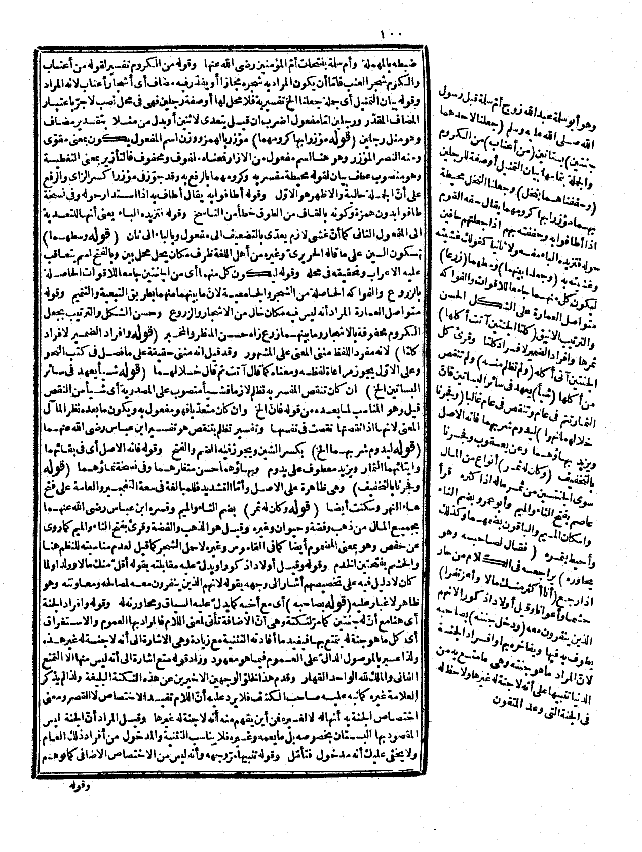 وقوله: أو لاتصال الخ، فيكونان كجنة واحدة وليس المقام مقام بيان العدد بل بيان ما قاله حينئذ، وقد علمت خلوه عن النكتة المقتضي لتأخيره، وقوله: في واحدة واحدة أي لا يمكن إلا الدخول في واحدة وهذا كقوله: قرأت الكتاب بابا بابا وإعرابه وتحقيقه مذكور في النحو. قوله: (ضارّ لها بعجبه وكفره (فظلمه لها إمّا بمعنى تنقيصها وضررها لتعريض نعمته للزوال ونفسه للهلاك، أو بمعنى وضع الشيء في غير موضعه لأن مقتضى ما شاهده التواضع المبكي لا العجب بها وظنها أنها لا تبيد أبدا والكفر بإنكار البعث كما يدل عليه قوله: قال الخ. قوله: (تفنى هذه الجنة (لأن باد بمعنى فنى وهلك، وقوله ة لطول أمله الخ يحتمل أن يريد أن التأبيد ليس بمعناه المتبادر بل طول المكث وأن يريد أنه على ظاهره لأنه لجهله وإنكاره قيام الساعة ظن عدم فناء نوعها، وما قيل إنه لا يظنه عاقل، ليس بشيء لأنه لا يلزم عقل هذا القائل، وتمادى غفلته استمرارها وامتداد مداها، وقوله: كائنة إشارة إلى أن القيام الذي هو من صفات الأجسام المراد به التحقق والوقوع مجازاً جرى في العرف مجرى الحقيقة، وقوله: كما زعمت إشارة إلى شكه فيه كما يدل عليه أن، وقوله مرجعا إشارة إلى أنه تمييز وهو اسم مكان