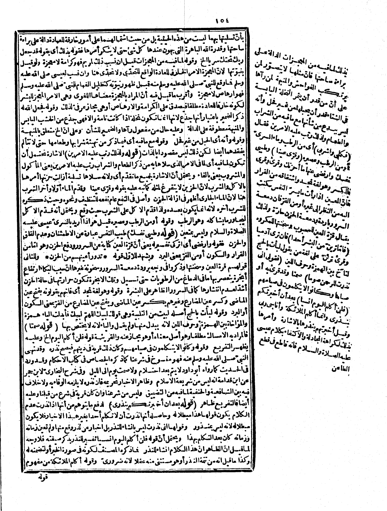 بمعنى لم يزل ولا يزال، قال في الغرر: والدرر الرضوية وهو فصيح كثير في كلام العرب وهو مجاز ثم بين وجه التجوز فيه، والدوام هنا يكون بمعنى ثبوت الخبر في الماضي من غير انقطاع له كما ذكره ابن الحاجب، ويصح أن يراد به هذا أيضا فيكون أحد الوجهين المذكورين في الكشاف ولا يرد عليه شيء كما توهم دماذا كان بمعنى صار فالمضيئ بالنسبة لما صار منه وهو يدل على البقاء فيما صار إليه كما هو شأن صار، وفي الكشاف إن كان لإيقاع مضمون الجملة في زمان ماض مبهم يصلح لقريبه وبعيده وهي هنا لقريبه خاصة بقرينة السياق والتعجب والغرض استمراره على حاله وهو أوكد ممن هو في المهد لأن السابق كالشاهد عليه، ووجه آخر أن يكون نكلم حكاية حال ماضية أي كيف عهد قبل عيسى أن يكلم الناس صبيا في المهد وقال الزجاج: الأجود أن تكون من شرطية لا موصولة أو موصوفة كما قيل أي من كان في المهد فكيف نكلمه وهذا كما يقال: كيف أعط من لا يعمل بموعظتي والماضي بمعنى المستقبل في باب الجزاء فلا إشكال فيه. قوله: الأنه أول المقامات (أي مقامات السالكين أولها الاعتراف بالعبودية وذلك بتفويض أموره كلها لسيده الذي لا يسئل عما يقعل ومراتب هذا المقام متفاوتة، ووجه الرد أنه لو كان ربا لم يكن عبدا بل مالكا متصرفا فلا وجه لما قيل إن الظاهر أن يقول على من زعم أنه ابنه وتفسير الكتاب بالإنجيل لأن تعريفه للعهد.
