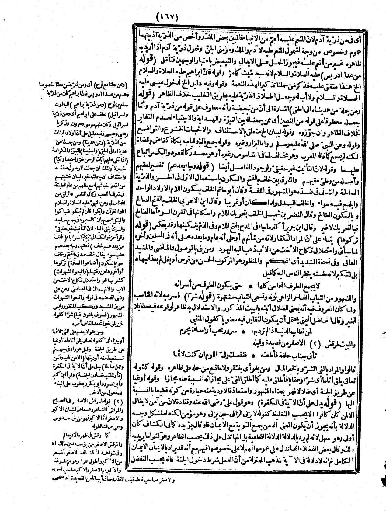 أنه لولا العلمية لم امتنعوا من إدخال اللام فإنهم نظروا إلى المعنى لا إلى التعبير بدليل الحسن وحسن وامتناع ذلك في نحو عمرو اهـ وما فهمه بعضهم من قول المصنف رحمه الله لأنه المضاف إليه في العلم من أن المنقول الإضافي يلزم كون المضاف إليه فيه علما قبل النقل فلما ورد عليه عبد شمس علما اعتذر بأنه كليئ انحصر في فرد في الخارج فأشبه العلم مما لا وجه له وليت شعري بماذا يعتذر عن أبي تراب وأمثاله، وهو ناشئ من قلة التدبر لأن المراد بالعلمية العلمية التقديرية الاعتبارية بعد النقل كما صرحوا به، وهذا مراد القائل أن جنة عدن علم لإحدى الجنان الثمان دون عدن وإلا كانت إضافة جنة إليه ك! ضافة إنسان زيد لكنه قد يحذف المضاف فيقال: عدن كرمضان الخ يعني وجنات بمعنى بساتين لئلا يقع فيما فز منه إلا أنه يفهم من ظاهره أق جزء اأحلم لما قام مقامه أعطى حكمه بخلاف عبد شمس فإنه ليس كذلك وهو تعسف لمخالفته لكلام القوم كما عرفت، وقد جنح بعضهم إلى أن جنات عدن علم لأجنة عدم حتى يذعي الحذف من غير داع له، فلو قيل من أول الأمر جنات عدن علم كبنات أو بر لم يحتج إلى ما تكلفوه، هذا غاية ما يقال هنا فدع عنك القيل والقال.