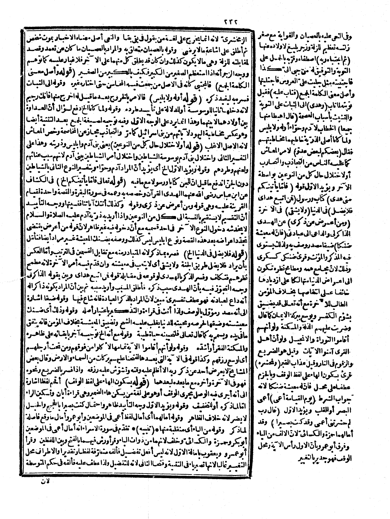 آخر جار على التفسيرين وقوله من ترك الخ بيان لما فلا وجه بتفسيره بأنهه أزيد في الشدة والبقاء من الشدّة التي لحقت الرسول صلى الله عليه وسلم والمؤمنين في الدنيا وأما عطفه على قوله من العمى فمع مخالفته لما في الكشاف خلاف الظاهر من غير مقتض له. قوله تعالى: ( {أَفَلَمْ يَهْدِ لَهُمْ} (معناه يبين لهم والمراد ألم يعلموا ومفعوله محذوف أي ألم يبين لهم العير وفعله بمن كذلك أو الجملة بعده كما سيأتي وفي فاعله وجوه أحدها أنه ضمير الله والثاني أنه ضمير الرسول صلى الله عليه وسلم لأنه المبين لهم أو هو ضمير الإهلاك المفهوم من قوله كم أهلكنا الخ والجملة مفسرة له ومفعوله محذوف كما مر، وقوله أي إهلاكنا، تفسير لقوله ما دل عليه الخ والإسناد مجازي. قوله: (أو الجملة بمضمونها) بالجرّ معطوف على الله أي الفاعل هو هذا اللفظ باعتبار دلالته على معناه لا بقطع النظر عنه بناء على وأن الجملة تكون فاعلاً كما تقع مفعولاً إما مطلقاً أو بشرط كون الفعل قلبيا ووجود معلق عن العمل الجمهور على خلافه. قوله: (والفعل على الأوّلين معلق يجري مجرى أعلم) وفي نسخة يعلم لأنّ التعليق يكون لأفعال القلوب أو ما تضمن معناها وهذا من الثاني فهي مفعوله أي ألم يبين الله أو الرسول صلى الله عليه وسلم لهم إهلاكهم بخلافه على الأخيرين فإنها فاعل أو مفسرة له وقوله: ويدل عليه القراءة بالنون أي نهد فإنها تدل على أنها ليست فاعلاً لفظاً أو معنى فإن نون العظمة تأباه كما لا يخفى والمعلق كم لأن لها المصدر. قوله: (يمشون الخ) الجملة حالية من القرون أو من مفعول أهلكنا والضمير على هذا للقرون المهلكة والمعنى أهلكناهم بغتة وهم متقلبون في أمورهم، أو من الضمير في لهم فالضمير للمشركين في زمن الرسول صلى الله عليه وسلم والعامل يهد والمعنى ما ذكره المصنف فالوجه الثاني مراده، أي فينبغي أن يعتبروا فكني بالمشي عن المشاهدة، وبها عن الاعتبار وليس صفة للقرون، كما توهم. قوله: (لذوي العقول الخ (تفسير للنهي جمع نهية وبيان لوجه التسمية، وقوله التعامي وقع في نسخة المعاصي بدله، وقوله هذه الأتة أي أمة الدعوة الشاملة للكفرة فإنهم يؤخر عنهم عذاب الاستئصال في الدنيا كما وعد الله به في قوله موعدهم الساعة إما إكراماً لنبيه صلى الله عليه وسلم أو لأن من نسلهم من يؤمن به أو لحكمة خفية. قوله: الكان مثل ما نزل بعاد وثمود (يعني أن اسم كان ضمير عائد على إهلاك القرون المفهوم مما قبله وما ذكره بيان للمراد منه فلا يقال إنه لو قال لكان