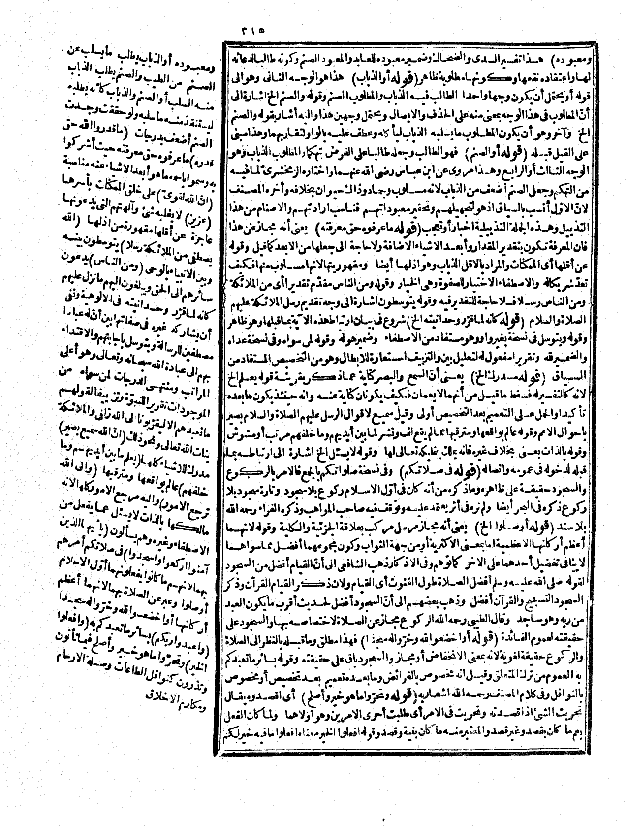 لابن الهمام أنها مقرونة بالأمر بالركوع والمعهود في مثله من القرآن كونه أمرا بما هو ركن للصلاة بالاستقراء نحو اسجدي واركعي. وإذا جاء الاحتمال سقط الاستدلال. وما روي من الحديث المذكور قال: الترمذي رحمه الله إسناده ليس بالقوي وكذا قال أبو داود وغيره لكن يرد عليه ما في الكشاف أن الحق أنّ السجود حيث ثبت ليس من مقتضى خصوص في تلك الآية لأن دلالة الآية غير مقيدة بحال التلاوة البتة بل إنما ذلك بفعل رسول الله في أو قوله: فلا مانع من كون الآية دالة على فرضية سجود الصلاة ومع ذلك يشرع السجود عند تلاوتها لما ثبت من الرواية فيه وفيه بحث. قوله: (دلّه ومن أجله أعداء ديته (يعني أق في مستعارة للتعليل والسببية كما في الحديث أن امرأة دخلت النار في هرة ويجوز حملها على ظاهرها بتقدير في سبيل الله وقيل عليه أن حمل الجهاد على ظاهره يأباه ما مر من أن السورة مكية إلا ست آيات فإن الجهاد إنما أمر به بعد الهجرة إلا أن يؤوّل بالأمر بالثبات على مصمابرة الكفار وتحمل مشاق الدعوة وفيه أنه مع كونه خلاف الظاهر يرجع إلى الجهاد اكبر الآتي ولذا قيل إنّ ما ذكر من كونها مكية إلا ست آيات ليس في أكثر النسخ. ومذهب الجمهور أنها مختلطة من غير تعيين وعليه اعتمد المصنف رحمه الله هنا. وقوله الظاهر صفة أعداء والباطنة معطوفة عليها وظاهر كلام المصنف رحمه الله أنه حمل الجهاد على ما يعمهما وليس من الجمع بين الحقيقة والمجاز وان كان جائزاً عند المصنف رحمه الله لأن حقيقته كما قال الراغب استفراغ الوسع والجهد في دفع ما لا يرتضي قال وهو ثلاثة أضرب مجاهدة العدو الظاهر ومجاهدة الشيطان ومجاهدة النفس وتدخل ثلاثتها في قوله تعالى {وَجَاهِدُوا فِي اللَّهِ حَقَّ جِهَادِهِ} انتهى فمن قصره على بعضها فقد قصر 0 قوله: (وعته عليه الصلاة والسلام الخ (هذا الحديث أخرجه البيهقي وغيره عن جابر رضي الله عنه قال: قدم على رسول الله صلى الله عليه وسلم قوم غزاة فقال: وقدمتم خير مقدم من الجهاد الأصغر إلى الجهاد الأكبر وفي سنده ضعف مغتفر في مثله وتبوك علم لأرض بين الشام والمدينة ممنوع من الصرف وقعت فيها غزوة للنبي صلى الله عليه وسلم. قوله: (أي جهادا فيه حقاً) أي في الله في الدر المصون أنه منصوب على المصدرية وعند أبي البقاء أنه نعت لمصدر محذوف أي جهاداً حق جهاده وفيه أنه معرفة فكيف توصف به النكرة. وقال الزمخشري إن إضافته لأدنى ملابسة واختصاص فلما كان الجهاد مختصا بالله من حيث إنه مفعول من أجله ولوجهه صحت إضافته إليه ويجوز أن يتسع في الظرف كقوله ويوم شهدناه والمراد بالظرف الجار والمجرور لأنه كان في الأصل حق جهاد فيه. أو جهادكم فيه انتهى وقوله: جهاد إشارة إلى نصبه على