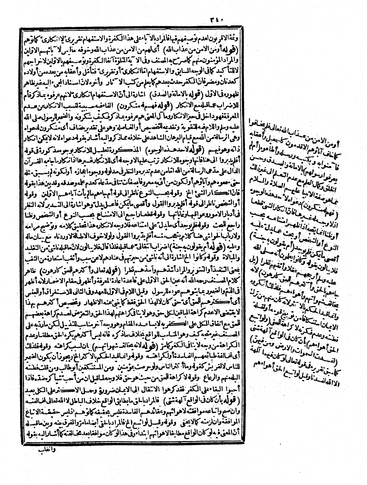 إلى قوله فهم له منكرون، كما تشهد له الفاء وقد مرّ تقريره لأنّ الإنكار منهم والاتهام إما لعدم معرفة ما أتى به لعدم فهمه أو لعدم مثله أو لعدم معرفة من أتى به وتبيين انتفائها بالاستفهام الإنكارفي الذي في معنى النفي، وكراهة الحق من قوله: أكثرهم للحق كارهون، وعدم الفطنة من نفي التدبر ولا وجه لما قيل إنه اكتفى بذكرهما عن ذكر الاستنكاف إذ لا ذكر له في النظم ولم يذكر أمر الجنة وطلب الأجر لأنه داخل في معرفته بكمال العلم وحسن الخلق الشامل للكرم وعلوّ الهمة بحيث لا يرجو من غير مولاه الكريم. وقوله الصراط السويّ أي المستقيم إشارة إلى أنّ تعريفه للعهد إلا أنه يفهم من ذكره هنا أنها تمت هنا لأنّ منها الجنة والخرج فينافي قوله: لا وجه له غيرها ودفعه بما مرّ من أنها داخلة في الثلاثة الأول لكنها ذكرت للبسط والتصريح بما صرّحوا به. قوله: (فإنّ خوف الآخرة الخ) إشارة إلى أنّ الصلة علة لما في الخبر من الحكم كما تقرّر في المعاني. وقوله: لثبتوا هذا تفسير للجاج لأنّ التمادي تفاعل من المدى وهو يفيد الاستمرار والثبات، ويحتمل أنه تأويل له لأنّ لجاجهم ثابت قبل الكشف