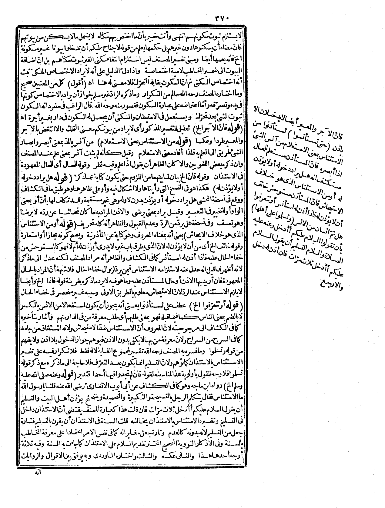 اللغة فاعرفه. وقوله: أو من تحية الجاهلية لو عطفه بالواو كان أحسن. قوله: (دخل بيتاً) هو على ظاهره ولا حاجة إلى تأويله بأراد الدخول واللحاف معروف. وقوله: روي الخ رواه في الموطأ وغيره ومنه يعلم أنّ غير بيوتكم شامل لمسكن الأمّ وأمّا اقتضاؤه أنّ العلة هي التحرّز عما يؤدّي إلى الاطلاع على عورة الغير وسيصرّح بأنها أعم فغير مسلم. قوله: (متعلق بمحذوف) أي تعلقاً معنوياً لأنه في معنى التعليل وقد مرّ ما في قوله إرادة الخ فتذكر وقوله وتعملوا هذا أولى من عطفه بأو كما في بعض النسخ. قوله: (فإن لم تجدوا فيها أحدا يأذن لكم) ذكر فيه احتمالين في الكشاف اختلف شرّاحه في الفرق بينهما وكلام المصنف شامل لهما لأنه يحتمل أن لا يكون فيها أحد أصلاً فلا يجوز دخولها لحاجة إلا بإذن من أهلها على أن يكون النفي للقيد والمقيد معاً وأن يكون فيها من لا يعتد بإذنه كصبيّ وعبد على أنّ المنفيّ هو القيد فقط وقال فإن لم تجدوا دون لم يكن لأنّ المعتبر الوجدان سواء كان فيها أو لم يكن. وقوله حتى يأتي الخ صادق بالوجهين وما يخفيه الناس أي وان لم يكن عورة وقوله يأذن وقع في نسخة يؤذن بمعنى يعلم بالحال. قوله: (مع أنّ التصرّف في ملك الغير الخ) المراد بالملك ما يشمل ملك العين والمنفعة فلا يرد أنّ التعليل لا ينتظم ما إذا كان الداخل معيراً حتى يحتاج إلى الجواب بأنه لندرته لم يعتبر. ولذا أورد. بمع الدالة على أنه ليس بتعليل مستقل فلم يبال بعدم شموله مع أنّ الندرة غير مسلمة. قوله. (واستثنى ما إذا عرض الخ) أي المستثنى من الحكم المذكور في قوله يا أيها الذين آمنوا إلى هنا ما ذكر وليس الاستثناء هنا بالمعنى المصطلح بل التخصيص بأمر معلوم من الشرع والعقل ونحوه فهو بمعنى الإخراج مطلقاً لأنّ الضرورات تبيح المحظورات وموضع الضرورة مستثنى من القواعد كما بين في محله. والحرق والغرق لما فيها من الحيوان تبح المحظورات وموضعالضرورة مستثنى من القواعد كما بين في محله. والحرق والغرق لما فيها من الحيوان ونحو. يكون في الدار الخالية والمنكر كالفسق