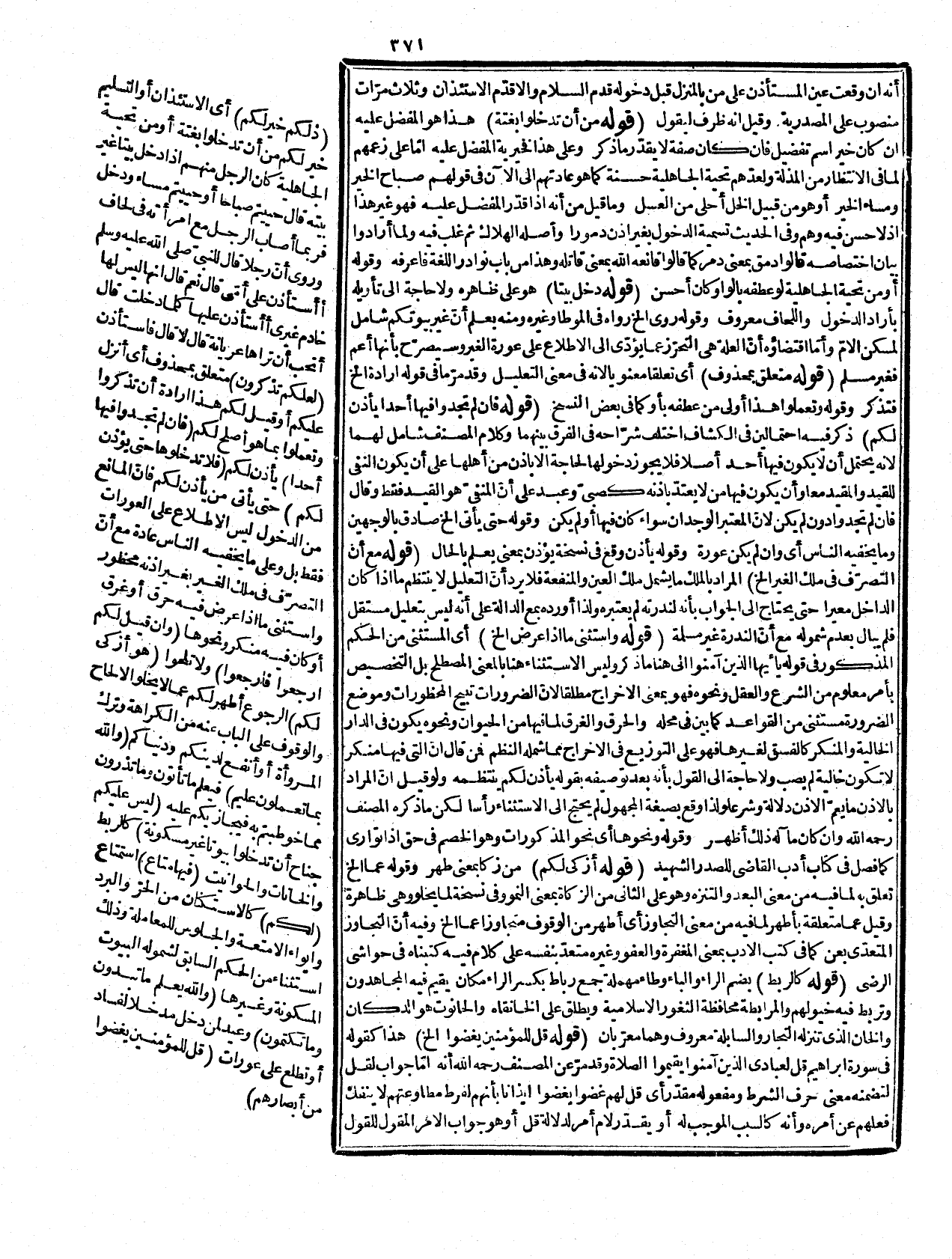 عن الريبة وقيل المراد أنه أنفع من الزنا والنظر الحرام فإنهم يتوهمون لذته ضعاً مع ضرره في الآخرة والدنيا لكونه مجلبة للفقر والقحط والطاعون كما ورد في الآثار. والإجالة مجاز عن استعمالها في الرؤية وما لا يحل النظر إليه من الرجال العورة وما بين السرّة والركبة ولمذا قيل: لو ترك* قوله: من الرجال كان أخصر وأظهر لأنّ النظر إلى ما ذكر من النساء لا يحل لهن أيضاً ومن في قوله من الرجال بيانية أو تبعيضية لإخراج ما عدا المذكوو أو الحل النظر إلى المحارم والأزوأح فتأمّل. قوله: (بالتستر أو التحفظ) قد أخر التفسير الذي قدّمه هنا ومرضه في الآية السابقة وليس هذا بناء على ما في الكشف من أنه لاستلزامه المعنى الثاني على وجه برهاني لأنه لو كان كذلك سوى بينهما بل لأنه أنسب بما بعده سواء أريد به ستر أنفسين أو ستر فروجهن مع أنّ الستر بحال النساء أليق وأمّا كونه إشارة إلى ارتضاء ذلك القيل فلا وجه له. وقوله: أو التحفظ أو فيه لمنع الجمع والتخيير في التفسير، وقيل: لمنع الخلق.