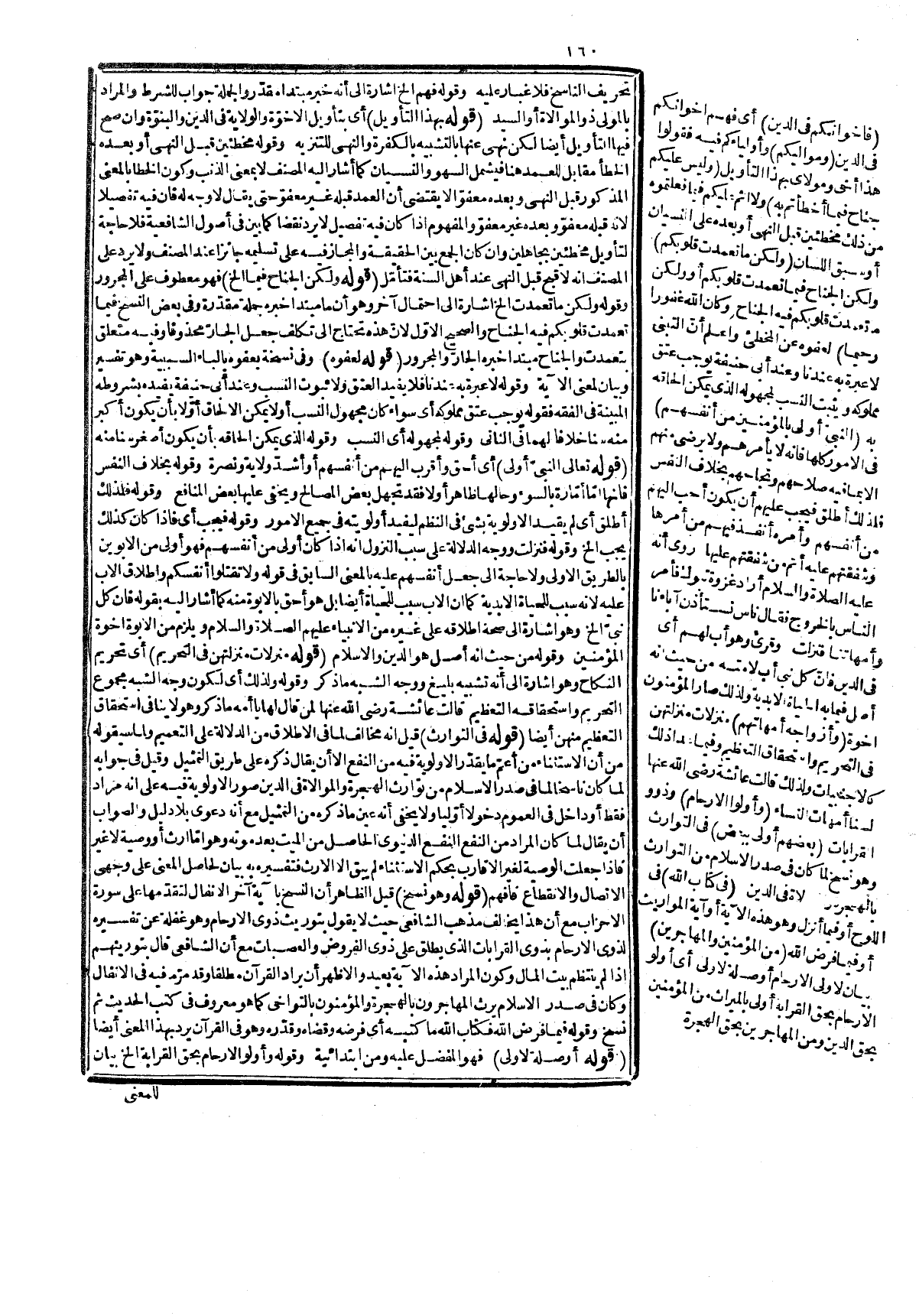للمعنى على الوجه الثاني بأن محصله أن الأقرباء أولى بالإرث من غيرهم من المؤمنين المهاجرين وغيرهم وعدى تفعلوا بإلى لتضمينه معنى الإيصاء والإسداء، وقوله من أعتم الخ فهو شامل لكل نفع ما لي إرثا ووصية وهبة ويدخل في حكم الهبة الهدية والصدقة، والمراد بالمعروف الوصية ولا ترد الهبة فإنها غير جائزة للوارث في المرض لأنها في حكم الوصية، ولذا تنفذ من الثلث ولا ترد المعاونة ونحوها فإن المراد النفع المالي ولا ينافيه العموم فافهم. قوله: (أو منقطع) يعني إذا حصلت الألوية بالتوارث كما هو ظاهر كلامه والمعروف أيضاً بمعنى التوصية أو عامّ لما عد التوا رث.
