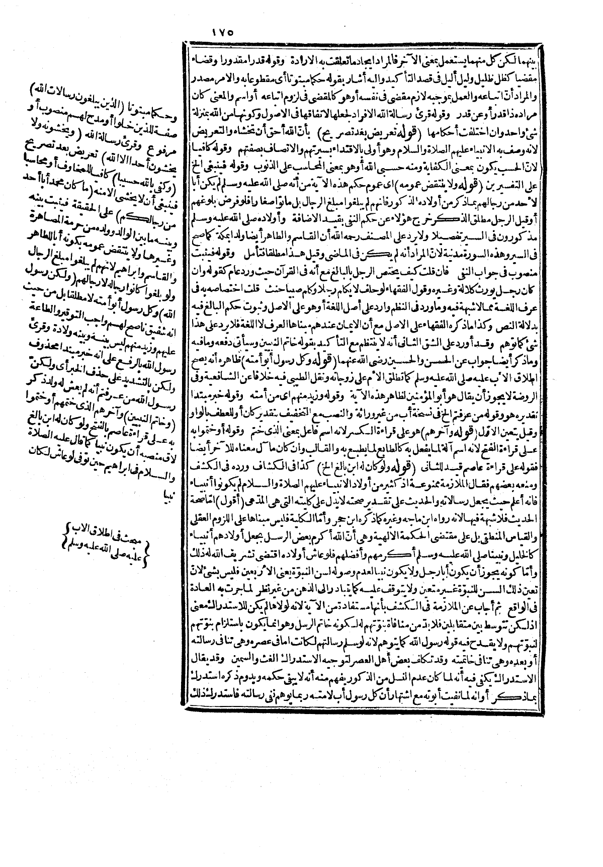 فعلم منه أنّ المنفي الأبوّة الحقيقية، وما قيل من أنّ قوله لو كان له ابن بالغ ناظر إلى الوجه الأوّل من الجواب عن النقض، وأما على الثاني فيجوز أن يقال كما أنّ قوله رسول الله يفيد كونه أبا لأمته من الحيثية التي ذكرها يفيد قوله خاتم النبيين امتداد هذه الأبوة إلى القيامة، وهذا لا يحصل من قوله رسولط الله وهو دفع لما أورد من أنّ الثاني لا ينتظم مع التأكيد يعني أنه لما قال إنه ليس أبا حقيقيا قال لكنه أب من حيث شفقته فما ذكر مؤكد للأبوة المثبتة لا للمنفية إذ لا يتعين ذلك فإنّ قوله رجاله لا رجالكم الخطاب فيه للأمة وأولاده من أمته فيدخلون في رجالكم (قلت (هذه مغالطة باردة لأن الإضافة للعهد الخارجي فالمراد به من أولاده لا من أولادكم.