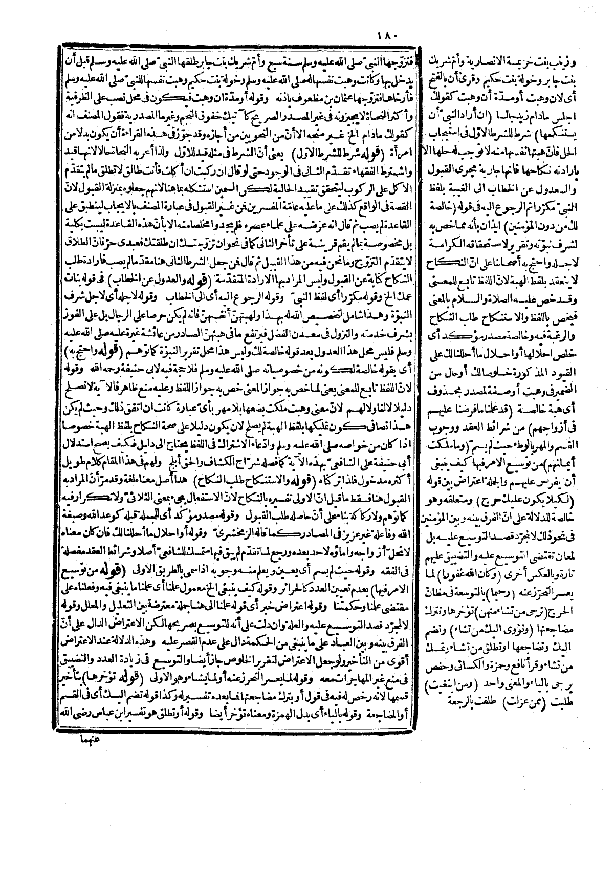 للأزواح، وهو أسلم من التكلف والداعي له ما ذكرنا وسيأتي تفصيله في سورة سبأ. قوله: (لتوغله قي التنكير) هذا مخالف لكلام النحاة فإنهم جوّزوا الحال من النكرة إذا وقعت منفية لأنها تستغرق فيزول إبهامها كما صرّح به الرضى فما ذكره مقتض. لا مانع، وأما ما قيل من أن منع التنكير لذلك للزوم التباس الحال بالصفة، وهو مندفع بالواو فليس له وجه لأن المصنف تابع للزمخشريّ في جواز دخول الواو على الصفة لتأكيد لصوقها كما صرّحوا به، وأما كون ذي الحال إذا كان نكرة يجب تقديمها فغير مسلم في الجملة المقرونة بالواو لكونه بصورة العاطف. قوله: (وتقديره مفروضاً إعجابك الخ) دفع لما يتوهم من أن لو تقتضي امتناع مدخولها والحال تدل على ثبوت أمر لذيها فبينهما تناف بأنه مؤوّل بوصف وجودي، وهو ما ذكر له، وقوله في أنّ الآية الدالة على عدم حل النساء له بعد ذلك منسوخة أم لا والناسخ إنا أحللنا كما قيل أو قوله تؤوي الخ كما ذكره المصنف رحمه الله لكنه على تفسيرها بالطلاق، وعدمه وتقدير تأخير نزولها إذ لا يمكن النسخ مع التقدّم فقول بعضهم إنه من الأعاجيب إذ نسخت آية متقدمة آية متأخرة نظر الظاهر ترتيب المصحف والا فهو غير متصوّر، ووجه النسخ على تفسيرها بتطلق من تشاء إنه يدل بعمومه على أنه أبيح له الطلاق، والإمساك لكل من يريد فيدل على أنه له تطليق منكوحاته، ونكاح من يريد