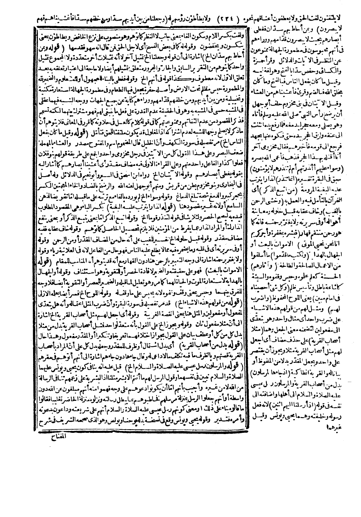 المفتاح وبه يندفع السؤال الأوّل وهذه النسخة هي التي عليها المعوّل لأنّ يونس عليه الصلاة والسلام لم يدرك زمن عيسى، وإن أدركه يحيى كما فصل في التواريخ، وفي تاريخ ابن الوردي إنّ النصارى تسمى يحيى يوحنا والله أعلم. قوله: (فقوّينا) من قولهم للأرض الصلبة عزاز ومنه العز بمعناه المعروف، وفيه لغتان التخفيف والتشديد وبهما قرئ في السبعة وهما بمعنى كشدّد وشدد، وقوله وحذف المفعول أي لم يقل فعززناهما والمعزز بصيغة المفعول وبه نائب فاعله وليس فيه ضمير، وقو؟ له إنا إليكم مرسلون أي من عيسى أو من الله على الوجهين السابقين، وشمعون من الحواريين. قوله: (فآمن حبيب