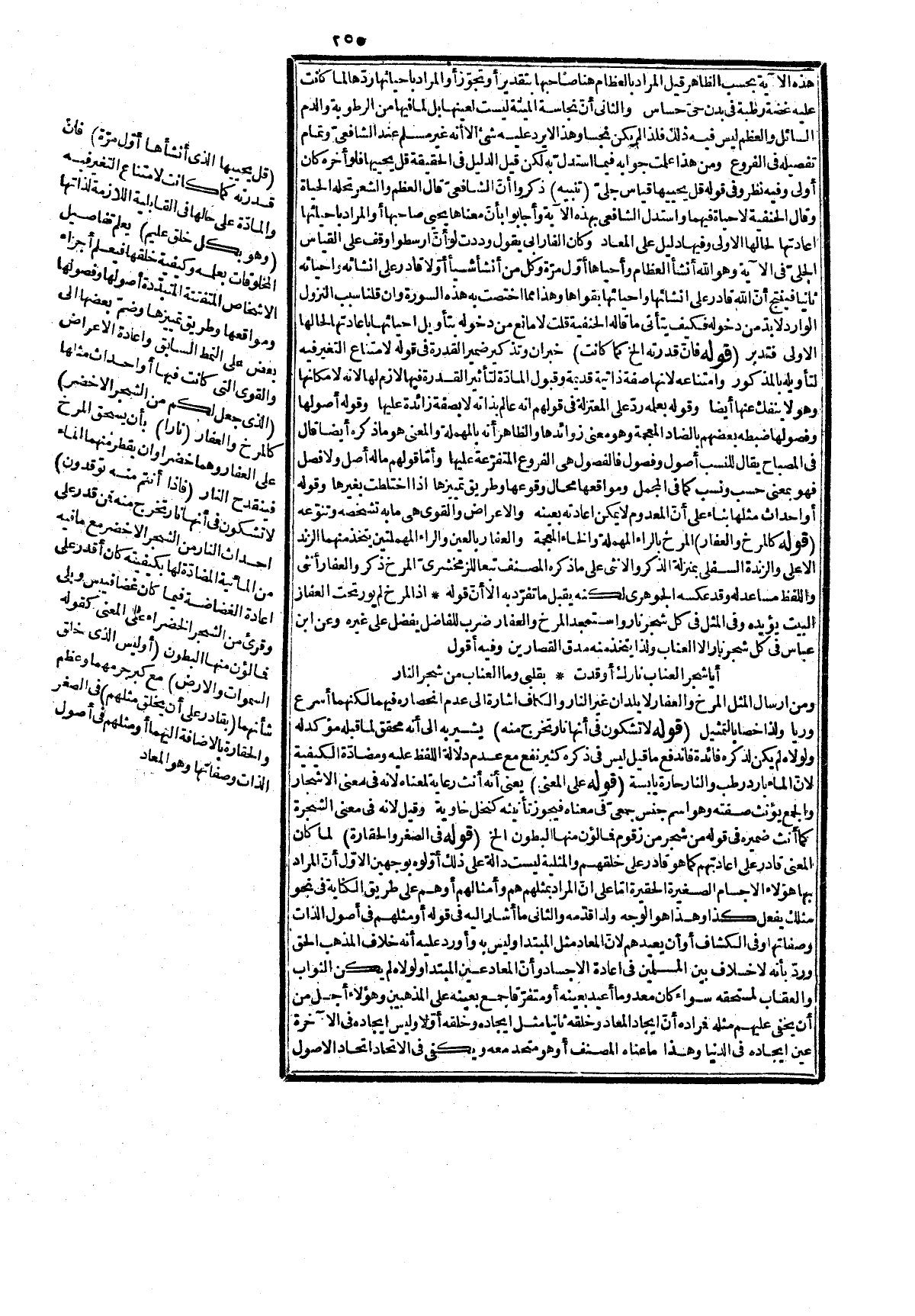 ضربوا له الخ إشارة إلى قوله وضرب لنا مثلا، وقوله وتعجيب إما معنى آخر أو هما مرادان بناء على مذهبه في الجمع بين الحقيقة والمجاز والتعليل من التعليق به وجعله صلة، والقدرة من تصرّفه في كل شيء. قوله: (للمقرّين والمنكرين الف ونشر مرتب وقد قيل إنه وعيد بناء على أن الخطاب للمشركين كما مرّ توبيخاً لهم، ولذا عدل عن مقتضى الظاهر وقد ذكرها صاحب النشر، وقوله بهذه الآية أي قوله فسبحان الذي بيده ملكوت كل شيء الخ لأنها فذلكة شاملة لأمور المبدأ والمعاد، ولذا سن قراءتها عند المحتضر وعلى الموتى. قوله: (1 نّ لكل شيء قلباً وقلب القرآن يس الخ) هذا الحديث رواه الترمذفي عن أنس رضي الله عنه، وفيه كتبت له قراءة القرآن عشر مزات، وعن الغزاليّ أنّ المدار على الإيمان وصحته بالاعتراف بالحشر والنشر وهو مقرّر فيها على أبلغ وجه وأحسنه فلذا شبهت بالقلب الذي به صحة البدن وقوامه، وقيل المراد بالقلب اللب المقصود لمن له لب فإنّ ما سواه مقدمات أو متممات والمقصود من إرسال الرسل! انزال الكتب إرشاد العباد إلى غايتهم الكمالية في المعاد وذلك بالتحقق والتخلق بما عبر عنه بالصراط المستقيم كما مرّ في الفاتحة وقد استحسن ما قاله حجة الإسلام الإمام الرازي: ولا يرد عليه سواء أريد بالصحة الثبوت أو ما يقابل البطلان والفساد أو ما يقابل المرض والسقم إنّ كل ما يجب الإيمان به لا يصح الإيمان بدونه فلا وجه لاختصاص الحشر، والنشر بذلك كما قيل لما أفاده ذلك القيل من تميزه على ما سواه الموجب لفضله والمقتضى لتخصيصه من غير تكلف أنه ما يقابل السقم ومن صح إيمانه بالشحر خاف العقاب فارتدع عن المعاصي التي بها يضعف الإيمان فيكون كالمريض، وكذا كون وجه الشبه أنّ به صلاح البدن وهو غير مشاهد في الحس وله تكشف