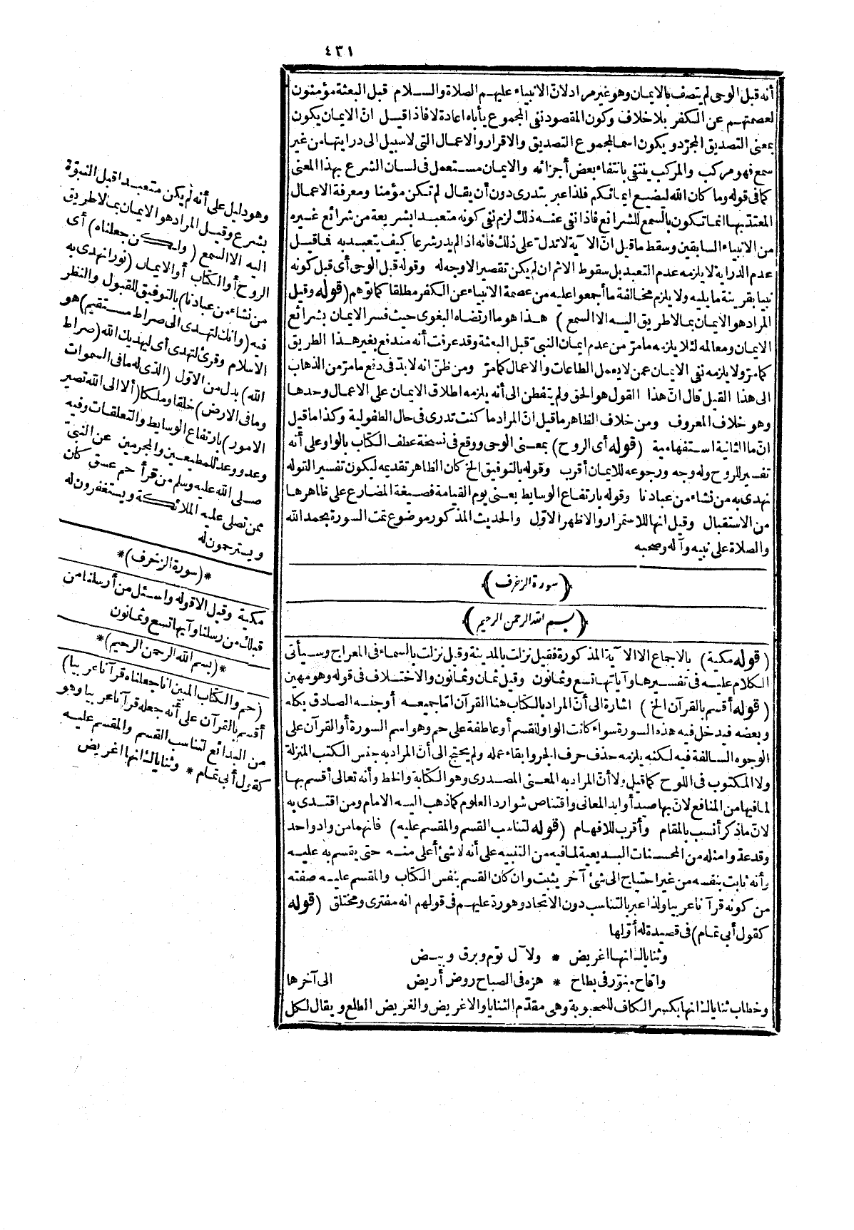 (ولعل إقسام الله بالأشياء الخ) يعني أنّ القسم في كلام العرب لتأكيد المقسم عليه، وإثباته فحيث وقع في كلام رب العزة ببعض مخلوقاته يكون لما في المقسم به مما يدلّ على المقسم عليه فيقع في كل مكان بما يناسبه، وقوله على المقسم عليه تنازعه الاستشهاد والدلالة، وما قيل إنّ الكلية غير صحيحة لا وجه له لمن تأمّل مواقعه. قوله:) والقرآن من حيث إنه معجز الخ) بيان لاندراج ما نحن فيه فيما ذكره من أن القسم من الله استشهاد بما في المقسم عليه من الدلالة على المقسم عليه إذ المقسم به القرآن، وهو بما فيه من الإعجاز يدل على أنه تعالى صيره ذكراً حكيما لاشتماله على منافع العباد وصلاج الدارين، وقوله: مبين طرق الهدى إشارة إلى انّ مبين يجوز أن يكون من إبان المتعدي، وقوله: بين إلى أنه من اللازم والقرآن مبتدأ وما يدلّ الخ خبره وفي نسخة بدون ما وهي أصح وأظهر، وقوله: من حيث الخ علة لقوله يدل، وبيان لوجه دلالته وكذلك بمعنى مبين أو بين. قوله: (لكي تفهموا معانيه (إشارة إلى أن لعل مستعارة من الترجي للتعليل كما مرّ تحقيقه في سورة البقرة وما في تفسيره بالإرادة، ومعانيه إشارة إلى مفعوله المقدر، وقوله: فإنه أصل الكتب إشارة إلى أن أم بمعنى أصل والكتاب بمعنى الكتب وتعريفه للعهد وأصالته لأنها منقولة منه، وقد مز فيه وجه آخر في سورة الرعد