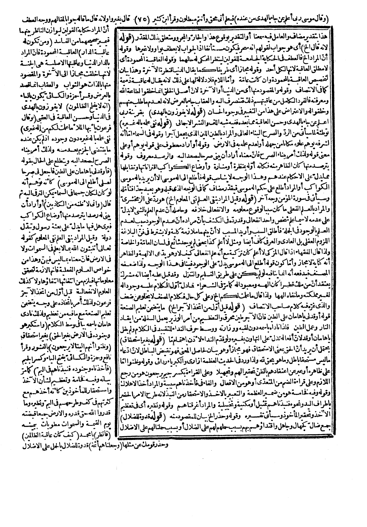 التي هي سببها أو فيه مضاف مقدر. قوله: (من المطرودين الأنه يقال قبحه بمعنى نحاه وأبعده كما ذكره الراغب، وغيره من اللغويين ولا يتكرّر مع اللعنة المذكورة قبله لأنّ معناها الطرد أيضاً لأنّ الأوّل في الدنيا وهذا في الآخرة، أو ذاك طرد عن رحمته التي في الدنيا وهذا طرد عن الجنة، أو على هذا يراد باللعنة المعنى الثاني مع أنّ من المطرودين معناه أنهم من الزمرة المعروفين بذلك، وهو أبلغ وأخص فلا يتوهم فيه تكرار أصلا، وعلى التفسير الثاني وهو منقول عن ابن عباس رضي الله عنهما معناه ذو وصور قبيحة سود الوجوه زرق العيون مشوّهون لكن فعل قبح منه لازم فبناء اسم المفعول منه غير ظاهر، ولذا أخره مع أنه المتبادر إلا أن تفسير السلف يدلّ على أنه سمع أيضا. قوله: (التوراة) وهي أوّل كتاب فصل فيه الأحكام وقوله: أمن بعد ما أهلكنا القرون فائدته على ما فسر به المصنف رحمه الله مع أنه معلوم التنبيه على أنها أنزلت بعد مساس الحاجة إليها، كما أنزل القرآن بعد الفترة وانطماس معالم الدين فلا يتوهم أنه لا فائدة فيه، وأنّ حقه أن يفسر القرون الأولى بمن لم يؤمن بموسى عليه الصلاة والسلام، والثانية بمن آمن به كما قيل. قوله: (أنوارا) لأنّ البصيرة نور القلب كما أنّ البصر نور العين ونصبه على الحالية، وقيل إنه مفعول له وقوله تبصر بها الحقائق أي تدرك، وقوله وهدى إلى الشرائع أي هادية لها وهي الطريق الموصلة إلى الله، وقوله لأنهم لو عملوا الخ يعني عموم رحمتها للناس لا ينافي أنّ ممن نزلت لهم كافر غير مرحوم لأنه لو عمل بها كان مرحوما بمقتضى، وعد. فلا حاجة إلى تقدير سبب أو جعلها مجازاً عنه كما قيل، وقوله: {لو عملوا نظرا إلى بعضهم إذ {مِّنْهُمْ أُمَّةٌ مُّقْتَصِدَةٌ} . قوله: (ليكونوا على حال الخ) يعني الترجي محال عليه تعالى فهو تمثيل، والمراد أنها أنزلت ليكونوا على حالة قابلة للتذكر كحال من يرجى منه الخير، والزمخشريّ جعله استعارة تبعية حيث شبه الإرداة بالترجي لكون كل منهما قبل الوقوع، والمصنف ردّه بقوله وفيه ما عرفت من لزوم تخلف مراد الله عن إرادته لعدم تذكر الكل إلا أن يكون من قبيل إسناد ما للبعض إلى الكل، وهي معنى قول الزمخشريّ إذا أراد الله شيئاً كان فلا إشكال فيه أصلاً فلا يرد ما ذكر لإرادة أحد الإرادتين للقرينة عليه لكنه لم يرتضه لمخالفته للمذهب الحق، وقيل الترجي من المخاطبين لأمنه تعالى. قوله: (يريد الوادي)
