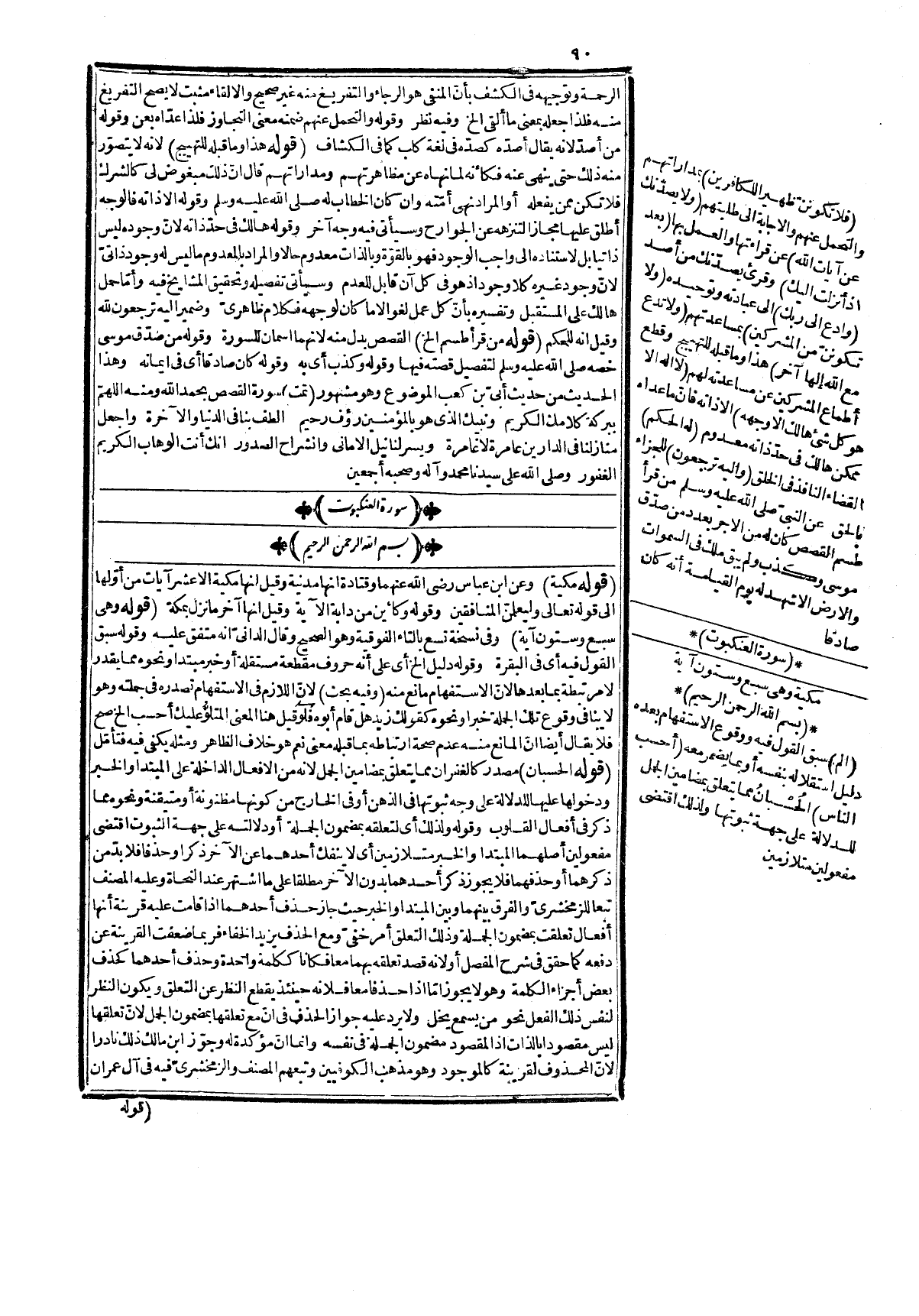 المفتوحة مشددة ومخففة فإنها لكون مدخولها جملة استغنى بمدخولها عن المفعولين، وأمّا سد أن المصدرية مسدهما فكذلك كما تسد مسد الجزأين في عسى أن يقوم زيد قاله ابن مالك ونقله الدماميني عنه في شرح التسهيل من غير فرق، واليه أشار المصنف فقوله في الكشف إن السذ مسدّهما إنما ذكره النحاة في أنّ المضدّدة والمخففة منها، وأمّا المصدرية فقد تجري مجراها لدخولها على الجملة، وقد تجري مجرى المفرد مخالف لما ذكره أهل العربية. قوله: (فإنّ معناه الخ) يعني أنه كان قبل دخول أن المصدرية عليه فيه احتمالان الأوّل أنّ تركهم مفعوله الأوّل وهم لا يفتنون حال منه بمعنى غير مفتونين، وهو معنى قوله من تمامه، ولقولهم هو معنى أن يقولوا لأنه بتقدير اللام، وهو المفعول الثاني وكونه علة لا ينافيه كما يتوهم كما في المثال المذكور، والثاني أنّ المفعول الأوّل ضمير الناس فإنه يجوز في أفعال القلوب اتحاد الفاعل والمفعول كما في قراءة لا يحسبنهم بالغيبة كما مرّ تحقيقه، والثاني متروكين الدال عليه يتركوا، وعلى هذا فأن يقولوا بتقدير اللام متعلق به، وقوله وهم لا يفتنون حال من ضمير المتروكين أيضاً، هذا تحقيق كلامه على وجه يزيل عنه الأوهام لأنّ منهم من توهم أنه على الوجه الأوّل مشتمل على المفعولين، وعلى الثاني على ما يسذ مسدهما ولم يتنبه لما ذكر ولا لأنه غير مطابق لقوله قبيله إنّ أن يتركوا الخ سادّ مسد المفعولين، وأمّا الفصل بين الحال وذيها بالمفعول الثاني، وهو أجنبيّ فوهم لأنه بعد السد مسده ليس ثمة مفعول ثان، وقبله كان مقدماً في التقدير فلا حاجة إلى توجيهه كما توهم، وأمّا الاعتراض! على تقدير أن يكون المعنى أحسبوا تركهم غير مفتونين لقولهم آمناً بأنه يقتضي أنهم تركوا غير مفتونين لأنّ الكلام في العلة، وهي مصب الإنكار، وليس كذلك لأنّ المعنى أحسب الذين نطقوا بكلمة الشهادة أن يتركوا غير ممتحنين بل يمتحنون فيميز الراسخ دينه من غيره، ولسبب النزول فالوجه كونه ساذاً مسدّ المفعولين فغير وارد لأنّ هذا بيان لأصل التركيب المعدول عنه فيجوز أن يكون وجه العدول عنه هذا المحذور مع أنه أجيب عنه بأنه إنما يلزم ما ذكر لو كان التقدير ما ذكره، أمّا لو قدر أحسبوا تركهم غير مانتونين بمجرد قولهم آمناً دون إخلاص وعمل صالح استقام ذلك كما صرّح به الزجاح مع أنه بناء على اعتبار المفهوم، ثم إنّ الترك هنا بمعنى التصيير كما في قوله تعالى: {وَتَرَكَهُمْ فِي ظُلُمَاتٍ لاَّ يُبْصِرُونَ} [سورة البقرة، الآية: 17] لا بمعنى التخلية ذكره الزمخشريّ وهو يتعدى لمفعولين حينئذ، وجملة أن يقولوا سادّة مسد المفعولين كما مرّ وحينئذ فلا يرد عليه أنّ الواو لا تتوسط بين المفعولين حتى يتكلف له أنه يجوز كما في قوله: وضرني هواك ~ وبي وطيبي يضرب المثل