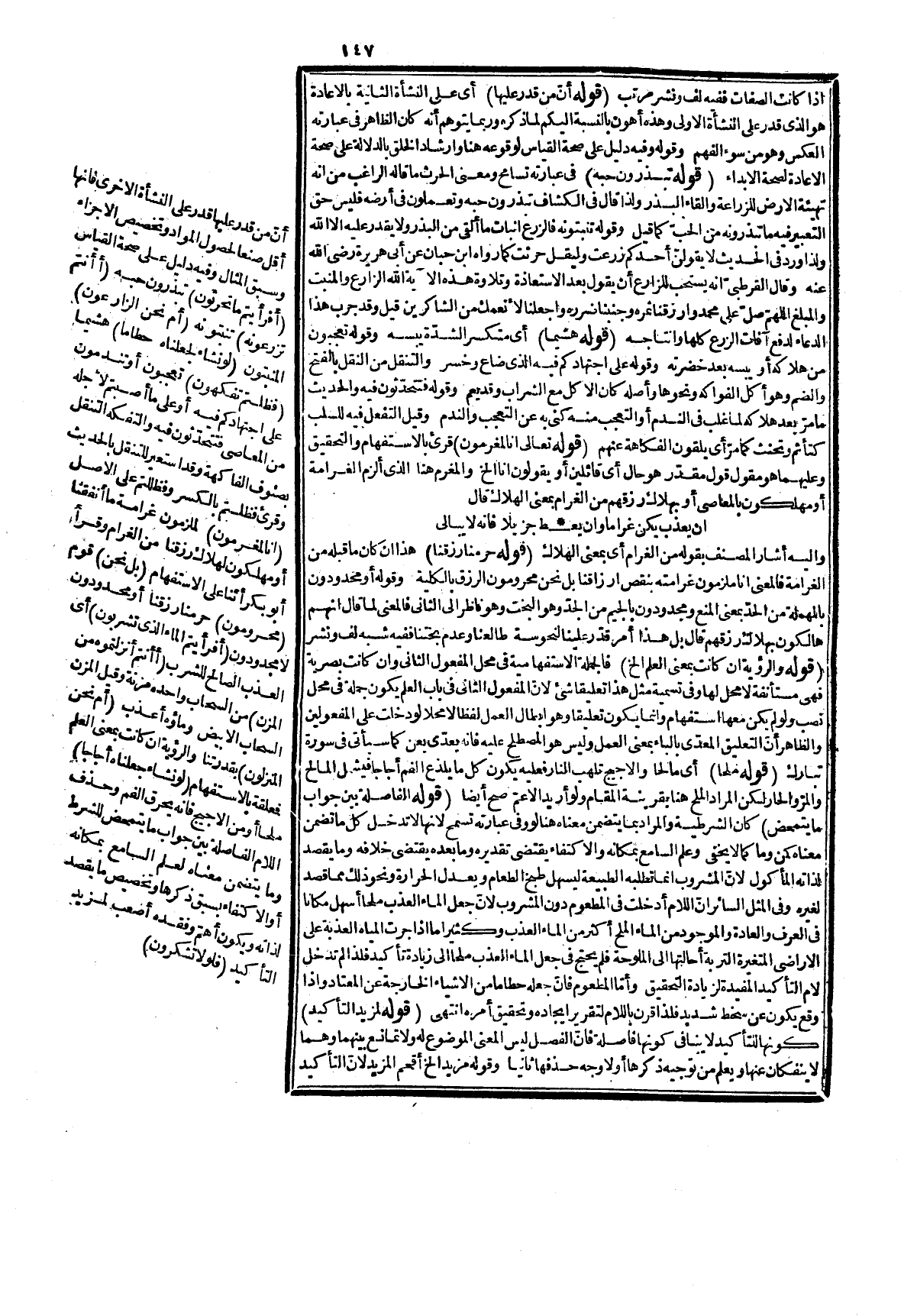 يعلم من تقديمه، وترتيب قوله: فظلتم الخ عليه. قوله: (أمثال هذه النعم) جعله مرتباً على جميع ما مرّ من المطعوم، والمشروب، ولم يخصه بعذوبة الماء لأنّ هذا أفيد، والضرورية هي التي لا بدّ للإنسان منها والزناد بكسر الزاي جمع زند وزندة للعود الذي يقدح منه النار لا مفرد كما يتوهم. قوله: (ثبصرة في أمر البعث) لأنّ من أخرح النار من الشجر الأخضر المضاد لها قادر على إعادة ما تفرقت موادّه وقد مر تقريره في ي! ، وقوله: أو في الظلام عطف على قوله في أمر البعث، وهو شبه الاستخدام لأنّ الأوّل من البصيرة في الأدلة المثبتة وهذا من البصر، والنظر فإنه يبصر بضوئها، والاستخدام لا يلزم كونه بالضمير ققد يكون بالتمييز، والعطف والاستثناء كقوله: