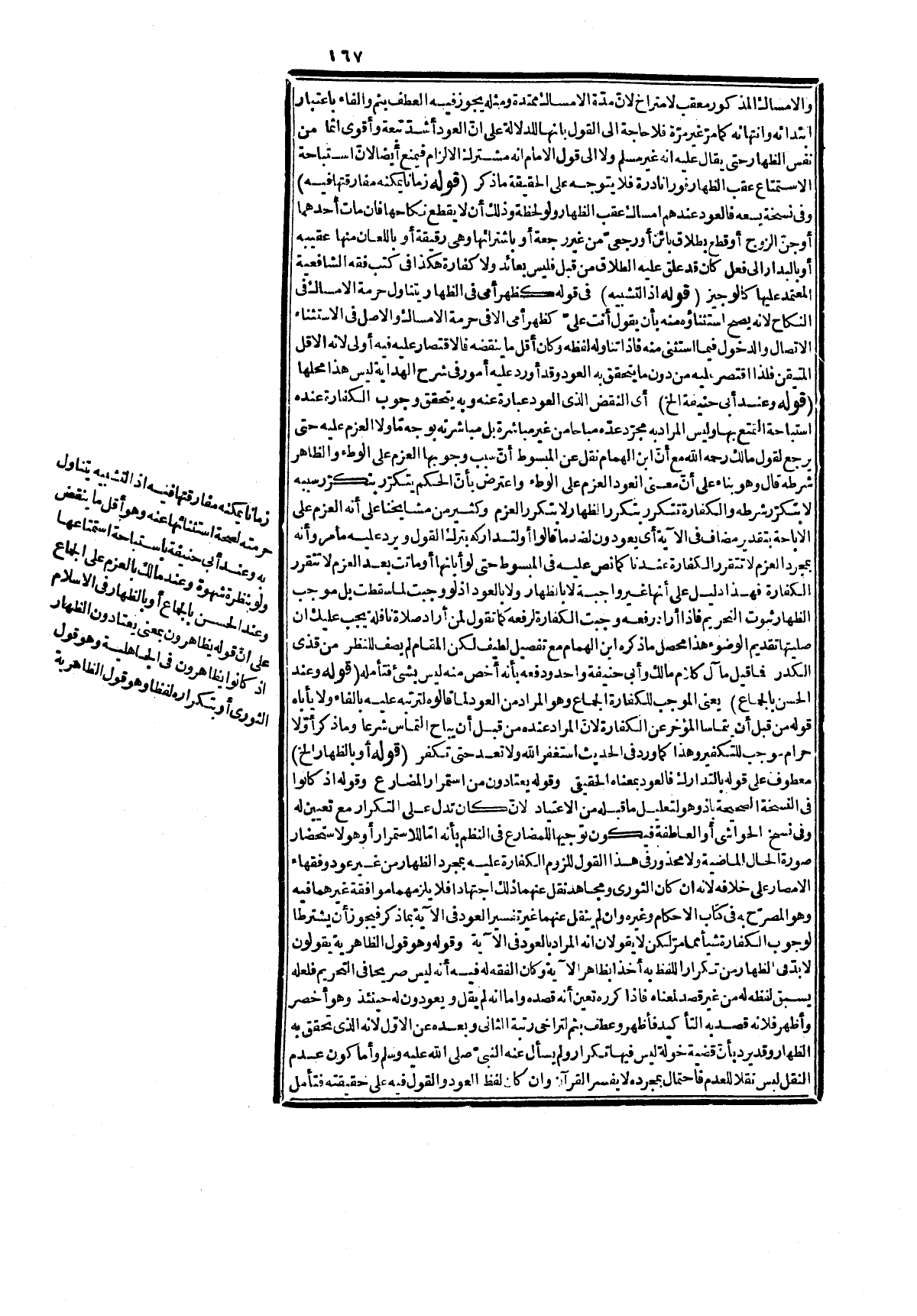 كفارة اهـ، ولا يصح على إطلاقه لما عرفت، وإن اعتمده بعضهم فليحرر. قوله: (والرقبة مقيدة بالإيمان الخ) هذا مذهب الشافعي، وعندنا لا فرق بين المؤمنة، والكافرة والكلام عليه مبسوط في الفروع، وكتب الأصول وليس هذا محله، وقوله: قياسا الخ، وقد قال فيها رقبة مؤمنة، والفرق بينهما تقدم. قوله: (لعموم اللفظ) وهو التماس في الاستمتاع بأقسامه لأنه يشملها بدلالة النص، ومقتضى التشبيه في قوله: كظهر أمي فإنّ المشبه به لا يحل الاستمتاع به بوجه من الوجوه فكذا المشبه، وقوله: أو أن يجامعها، والتماس كناية مشهورة في الجماع فيقصد منه ذلك، وقوله: وفيه دليل على حرمة ذلك أي الاستمتاع أو المجامعة قبل التكفير لأنه أوجب التكفير قبله فلا يجوز تقدمه عليه سواء كان التكفير بالإعتاق أو غيره خلافا لمالك في الإطعام حيث لم يقيد بكونه قبل التماس في الظاهر. قوله: (ذلكم الحكم الخ) فذا إشارة للحكم، والخطاب للمؤمنين أو للموجودين، وغيرهم من الأمّة، وقوله: لأنه يدل الخ تعليل لكون الحكم بالكفارة مما يوعظ به ويلين القلوب لأنه يدل على ارتكاب الجناية الموجبة للغرامة فيرتدع مرتكبه، وبخاف العقوبة، ويتعظ ولا يعود لمثله. قوله: (والذي غاب ماله واجد) أي له حكم الواجد للمال، وهو الغني فعليه الكفارة بالإعتاق لا بصوم، واطعام وقوله تعالى: {فَصِيَامُ شَهْرَيْنِ} أطلقهما عن قيد الهلالي، والشمسي فدل على صحة كل منهما فإذا ابتدأ من رأس شهر هلالي أجزأ ولو ناقصاً فله صوم ثمانية وخمسين يوماً، والا فعليه تكميل الستين حتى لو أفطر في آخرها لزمه الاستئناف، وقوله: لزمه الاستئناف لفوات التتابع المشروط بالنص