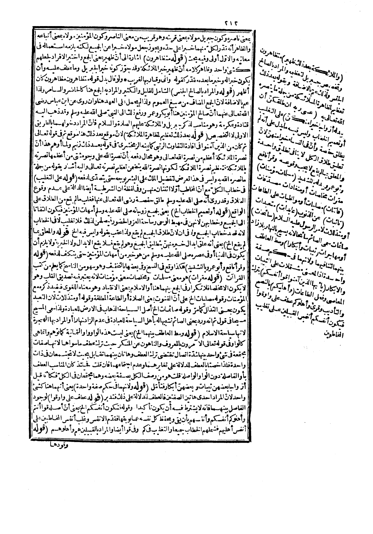 والعزم على أن لا يعود والمذكور شروطها عند المعتزلة كما في شرح المواقف، واعادة الفرائض أن يقضي منها ما وقع في زمان معصيته كشارب الخمر يعيد صلاته قبل التوبة لمخامرته للنجاسة غالبا، وتربية نفسه تدريجها في فعل الطاعة حتى يتم إلفه لها. قوله: (بصيغة الآطماع) بكسر الهمزة وهي عسى ولعل ونحوهما، وقوله: جرياً على عادة الملوك الخ فإنهم إذا أرادوا فعلاً قالوا: عسى أن نفعل كذا، وقوله: غير موجب خلافا لبعضهم في الإيجاب بها وكونه بين الخوف والرجاء لا ينافي غلبة الرجاء واحمادا بمعنى جعلهم محمودين عند الله وناواهم بمعنى عاداهم كما وقع في نسخة من النوى وهو البعد ففيه تعريض لأعدائهم بالخزي وفيه إشارة لترجيح العطف وقد جوّز كون الخبر معه والمراد بالإيمان فرده الكامل هنا، وقوله: طفئ كسمع ذهب نوره فأظلم مكانه وأتمم بمعنى أدمه إلى أن يصلوا إلى الجنة، وقوله: وقيل الخ فالإتمام الزيادة وهو معطوف بحسب المعنى على قوله: إذا طفئ الخ وعلى هذا لا يلزم أن يكون هذا من باب بنو فلان قتلوا قتيلاً كما توهم. قوله: (إذ بلغ الرفق مداه) وفي نسخة إذا وهي الصحيحة يعني إذا رفقت غاية الرفق فلم يفد ذلك أغلظ عليهم حينئذ فإن من لا يصلحه الخير يصلحه الشرّ، وقوله: جهنم أو مأواهم هو المخصوص بالذم المقدّر فيه قيل، وهو من عطف القصة على القصة. قوله: (مثل الله تعالى حالهم) أي الكفرة، وقوله: يحابون بالحاء المهملة والموحدة من المحاباة في البيع والمراد هنا مجازا الرعاية وفعل الجميل وقوله: بما متعلق بيجابون، وقوله: بحالهما متعلق بمثل، وقوله: تعظيم نوح من مدح الله لهما بقوله: عبدين الخ وكان مقتضى الظاهر تحتهما فإن تعظيم السيد لعبده ومدحه يكفي فيه مثله فلا يتوهم أن لا تعظيم في وصف الأنبياء بالصلاح، ولذا أضيف لضمير العظمة فافهم، وفيه أيضاً تعريض