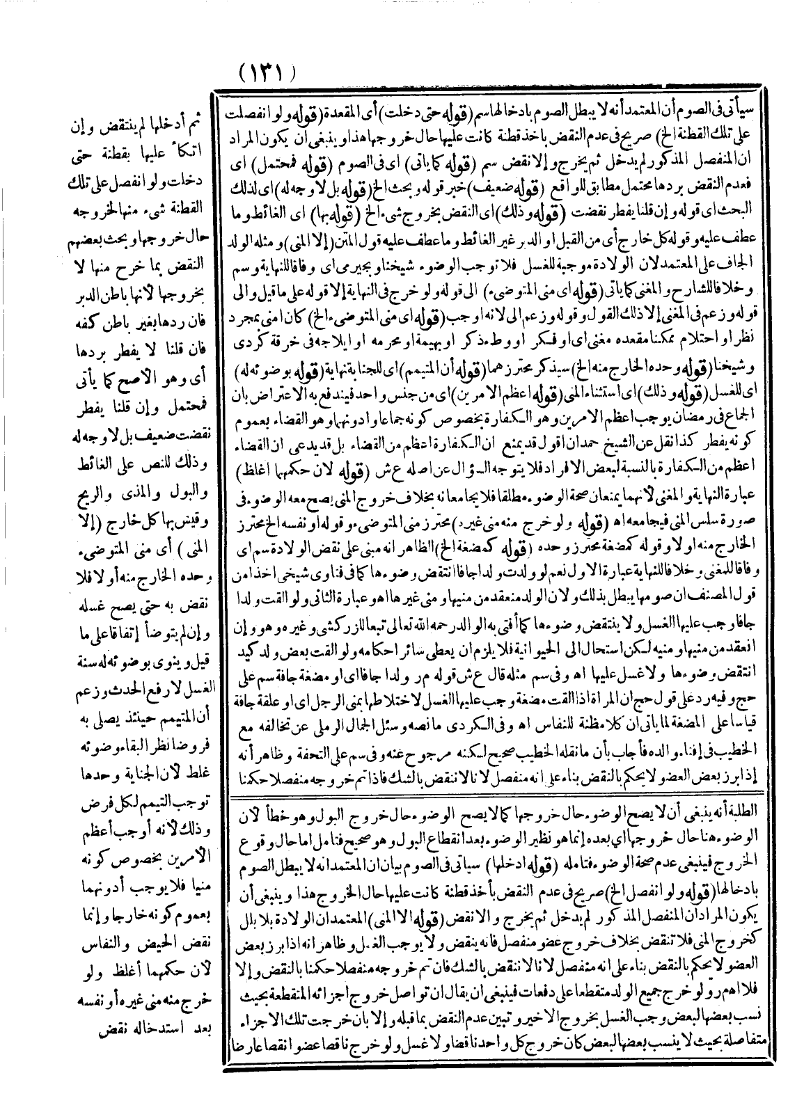 (قَوْلُهُ: حَتَّى دَخَلَتْ) أَيْ الْمَقْعَدَةَ (قَوْلُهُ: وَلَوْ انْفَصَلَتْ عَلَى تِلْكَ الْقُطْنَةِ إلَخْ) صَرِيحٌ فِي عَدَمِ النَّقْضِ بِأَخْذِ قُطْنَةٍ كَانَتْ عَلَيْهَا حَالَ خُرُوجِهَا هَذَا، وَيَنْبَغِي أَنْ يَكُونَ الْمُرَادُ أَنَّ الْمُنْفَصِلَ الْمَذْكُورَ لَمْ يَدْخُلْ ثُمَّ يَخْرُجْ وَإِلَّا نَقَضَ سم (قَوْلُهُ: كَمَا يَأْتِي) أَيْ فِي الصَّوْمِ (قَوْلُهُ فَمُحْتَمَلٌ) أَيْ فَعَدَمُ النَّقْضِ بِرَدِّهَا مُحْتَمَلٌ مُطَابِقٌ لِلْوَاقِعِ (قَوْلُهُ ضَعِيفٌ) خَبَرُ قَوْلِهِ وَبَحَثَ إلَخْ (قَوْلُهُ: بَلْ لَا وَجْهَ لَهُ) أَيْ لِذَلِكَ الْبَحْثِ أَيْ قَوْلُهُ: وَإِنْ قُلْنَا يُفْطِرُ نَقَضَتْ (قَوْلُهُ وَذَلِكَ) أَيْ النَّقْضُ بِخُرُوجِ شَيْءٍ إلَخْ (قَوْلُهُ بِهَا) أَيْ الْغَائِطِ وَمَا عُطِفَ عَلَيْهِ وَقَوْلُهُ كُلُّ خَارِجٍ أَيْ مِنْ الْقُبُلِ أَوْ الدُّبُرِ غَيْرَ الْغَائِطِ وَمَا عُطِفَ عَلَيْهِ