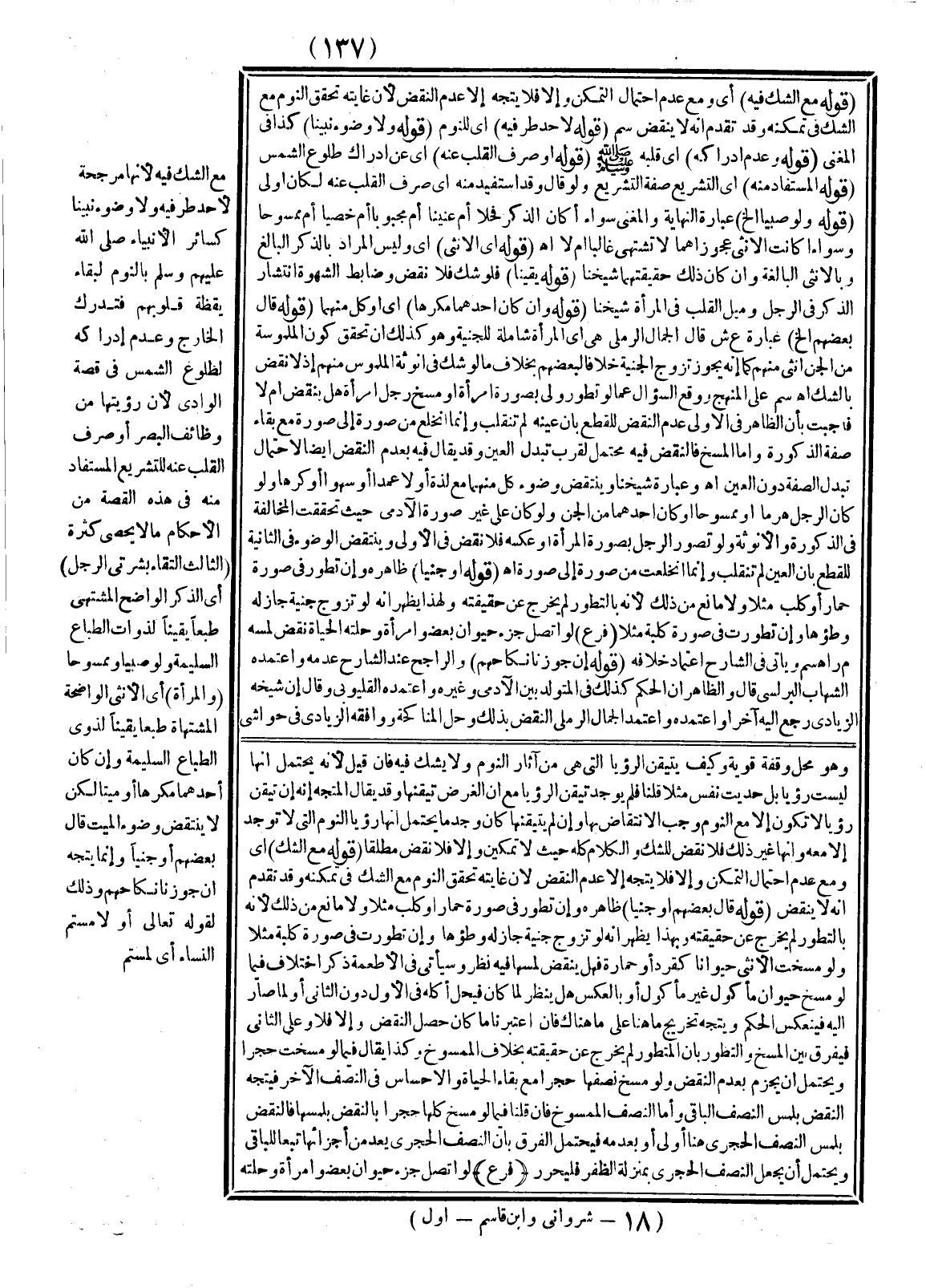 ـــــــــــــــــــــــــــــSمَحَلُّ وَقْفَةٍ قَوِيَّةٍ وَكَيْفَ يَتَيَقَّنُ الرُّؤْيَا الَّتِي هِيَ مِنْ آثَارِ النَّوْمِ وَلَا يَشُكُّ فِيهِ، فَإِنْ قِيلَ؛ لِأَنَّهُ يُحْتَمَلُ أَنَّهَا لَيْسَتْ رُؤْيَا بَلْ حَدِيثُ نَفْسٍ مَثَلًا قُلْنَا فَلَمْ يُوجَدْ تَيَقُّنُ الرُّؤْيَا مَعَ أَنَّ الْفَرْضَ تَيَقُّنُهَا وَقَدْ يُقَالُ الْمُتَّجِهُ أَنَّهُ إنْ تَيَقَّنَ رُؤْيَا لَا تَكُونُ إلَّا مَعَ النَّوْمِ وَجَبَ الِانْتِقَاضُ بِهَا، وَإِنْ لَمْ يَتَيَقَّنْهَا كَأَنْ وَجَدَ مَا يَحْتَمِلُ أَنَّهَا رُؤْيَا النَّوْمِ الَّتِي لَا تُوجَدُ إلَّا مَعَهُ، وَأَنَّهَا غَيْرُ ذَلِكَ فَلَا نَقْضَ لِلشَّكِّ وَالْكَلَامُ كُلُّهُ حَيْثُ لَا تَمْكِينَ وَإِلَّا فَلَا نَقْضَ مُطْلَقًا (قَوْلُهُ: مَعَ الشَّكِّ) أَيْ وَمَعَ عَدَمِ احْتِمَالِ التَّمَكُّنِ وَإِلَّا فَلَا يَتَّجِهُ إلَّا عَدَمُ النَّقْضِ؛ لِأَنَّ غَايَتَهُ تَحَقُّقُ النَّوْمِ مَعَ الشَّكِّ فِي تَمَكُّنِهِ وَقَدْ تَقَدَّمَ أَنَّهُ لَا يَنْقُضُ