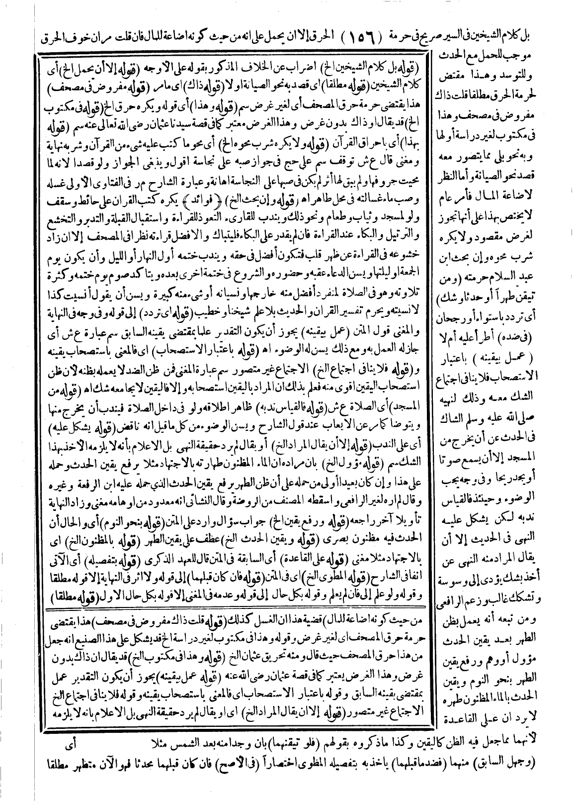 بَلْ كَلَامُ الشَّيْخَيْنِ فِي السِّيَرِ صَرِيحٌ فِي حُرْمَةِ الْحَرْقِ إلَّا أَنْ يُحْمَلَ عَلَى أَنَّهُ مِنْ حَيْثُ كَوْنُهُ إضَاعَةً لِلْمَالِ، فَإِنْ قُلْت مَرَّ أَنَّ خَوْفَ الْحَرْقِ مُوجِبٌ لِلْحَمْلِ مَعَ الْحَدَثِ وَلِلتَّوَسُّدِ وَهَذَا مُقْتَضٍ لِحُرْمَةِ الْحَرْقِ مُطْلَقًا