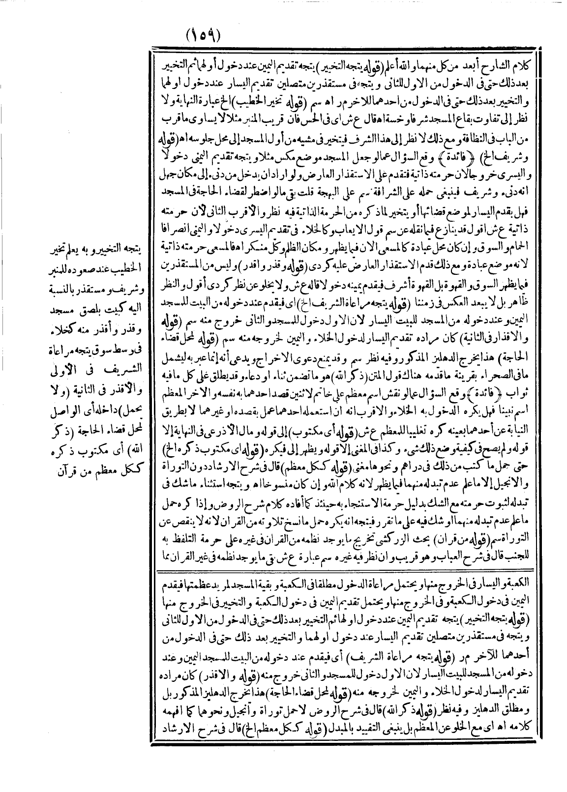 ـــــــــــــــــــــــــــــSالْكَعْبَةِ وَالْيَسَارِ فِي الْخُرُوجِ مِنْهَا وَيُحْتَمَلُ مُرَاعَاةُ الدُّخُولِ مُطْلَقًا فِي الْكَعْبَةِ وَبَقِيَّةِ الْمَسْجِدِ لِمَزِيدِ عَظَمَتِهَا فَيُقَدِّمُ الْيَمِينَ فِي دُخُولِ الْكَعْبَةِ وَفِي الْخُرُوجِ مِنْهَا وَيُحْتَمَلُ تَقْدِيمُ الْيَمِينِ فِي دُخُولِ الْكَعْبَةِ وَالتَّخْيِيرُ فِي الْخُرُوجِ مِنْهَا (قَوْلُهُ: يَتَّجِهُ التَّخْيِيرُ) يَتَّجِهُ تَقْدِيمُ الْيَمِينِ عِنْدَ دُخُولِ أَوَّلِهَا ثُمَّ التَّخْيِيرُ بَعْدَ ذَلِكَ حَتَّى فِي الدُّخُولِ مِنْ الْأَوَّلِ لِلثَّانِي وَيَتَّجِهُ فِي مُسْتَقْذَرَيْنِ مُتَّصِلَيْنِ تَقْدِيمُ الْيَسَارِ عِنْدَ دُخُولِ أَوَّلِهِمَا وَالتَّخْيِيرُ بَعْدَ ذَلِكَ حَتَّى فِي الدُّخُولِ مِنْ أَحَدِهِمَا لِلْآخَرِ م ر (قَوْلُهُ: يَتَّجِهُ مُرَاعَاةُ الشَّرِيفِ) أَيْ فَيُقَدِّمُ عِنْدَ دُخُولِهِ مِنْ الْبَيْتِ لِلْمَسْجِدِ الْيَمِينَ وَعِنْدَ دُخُولِهِ مِنْ الْمَسْجِدِ لِلْبَيْتِ الْيَسَارَ؛ لِأَنَّ الْأَوَّلَ دُخُولٌ لِلْمَسْجِدِ وَالثَّانِيَ خُرُوجٌ مِنْهُ (قَوْلُهُ: وَالْأَقْذَرِ) كَأَنَّ مُرَادَهُ تَقْدِيمُ الْيَسَارِ لِدُخُولِ الْخَلَاءِ وَالْيَمِينِ لِخُرُوجِهِ مِنْهُ