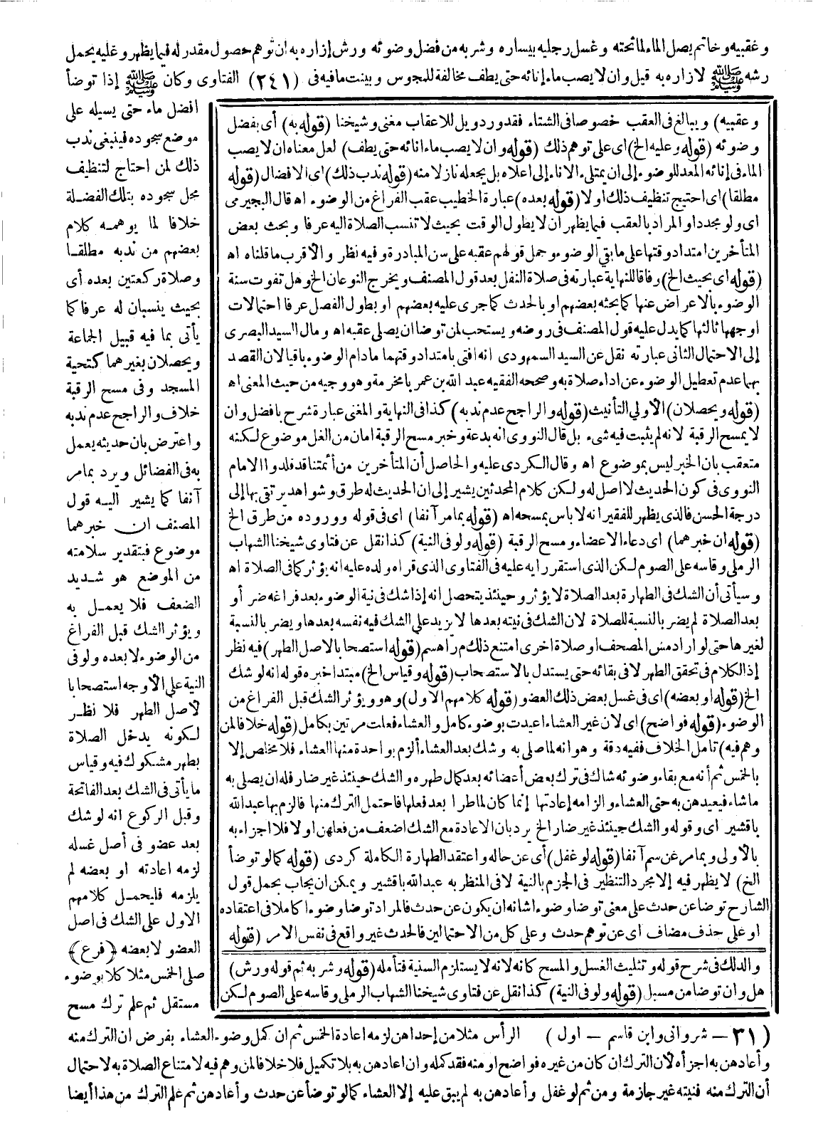 ـــــــــــــــــــــــــــــQوَعَقِبَيْهِ) وَيُبَالِغُ فِي الْعَقِبِ خُصُوصًا فِي الشِّتَاءِ فَقَدْ وَرَدَ «وَيْلٌ لِلْأَعْقَابِ» مُغْنِي وَشَيْخُنَا (قَوْلُهُ بِهِ) أَيْ بِفَضْلِ وُضُوئِهِ (قَوْلُهُ: وَعَلَيْهِ إلَخْ) أَيْ عَلَى تَوَهُّمِ ذَلِكَ (قَوْلُهُ وَأَنْ لَا يَصُبَّ مَاءَ إنَائِهِ حَتَّى يَطُفَّ) لَعَلَّ مَعْنَاهُ أَنْ لَا يَصُبَّ الْمَاءَ فِي إنَائِهِ الْمُعَدِّ لِلْوُضُوءِ إلَى أَنْ يَمْتَلِئَ الْإِنَاءُ إلَى أَعْلَاهُ بَلْ بِجَعْلِهِ نَازِلًا مِنْهُ (قَوْلُهُ: نَدْبُ ذَلِكَ) أَيْ الْأَفْضَالُ (قَوْلُهُ: مُطْلَقًا) أَيْ اُحْتِيجَ تَنْظِيفُ ذَلِكَ أَوَّلًا