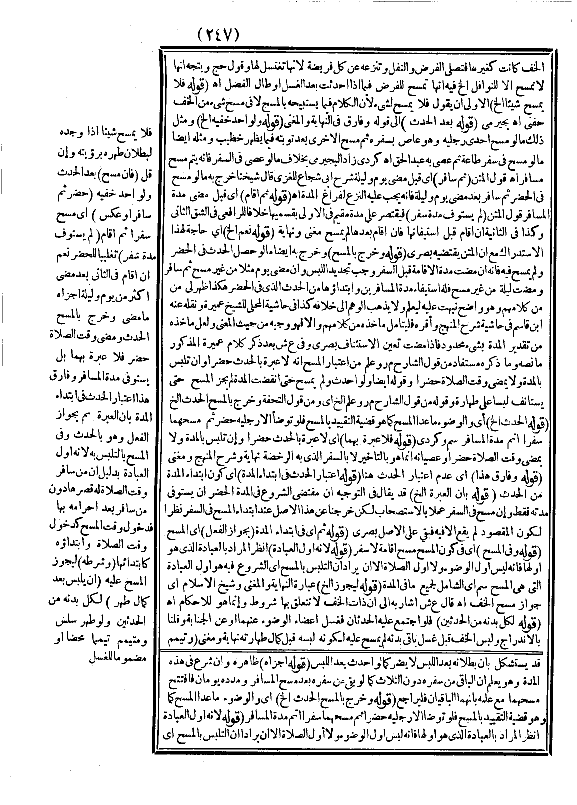 كُرْدِيٌّ، زَادَ الْبُجَيْرِمِيُّ بِخِلَافِ مَا لَوْ عَصَى فِي السَّفَرِ فَإِنَّهُ يُتِمُّ مَسْحَ مُسَافِرٍ اهـ قَوْلُ الْمَتْنِ (ثُمَّ سَافَرَ) أَيْ قَبْلَ مُضِيِّ يَوْمٍ وَلَيْلَةٍ شَرْحُ أَبِي شُجَاعٍ لِلْغَزِّيِّ قَالَ شَيْخُنَا خَرَجَ بِهِ مَا لَوْ مَسَحَ فِي الْحَضَرِ ثُمَّ سَافَرَ بَعْدَ مُضِيِّ يَوْمٍ وَلَيْلَةٍ فَإِنَّهُ يَجِبُ عَلَيْهِ النَّزْعُ لِفَرَاغِ الْمُدَّةِ اهـ.