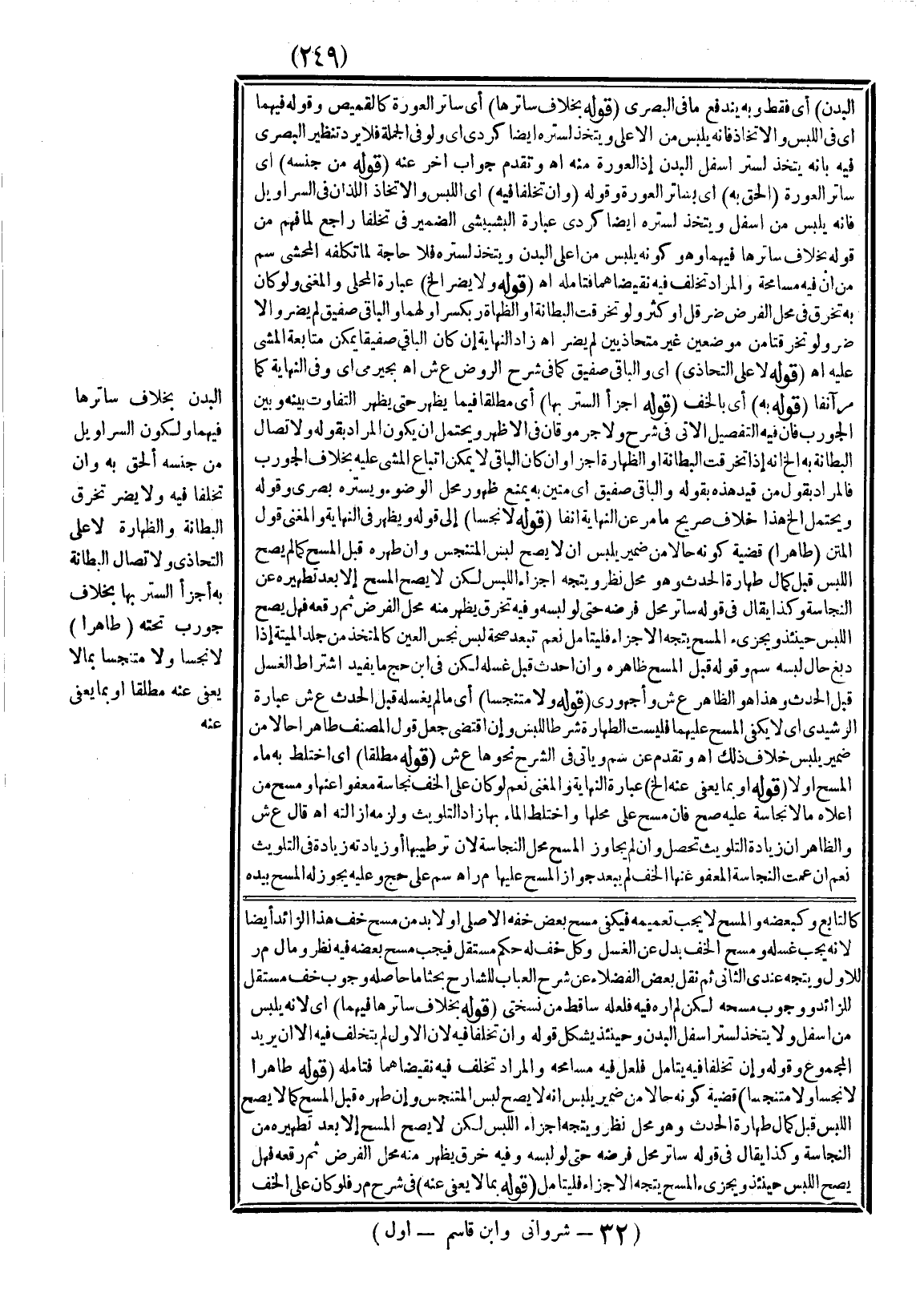 ـــــــــــــــــــــــــــــQالْبَدَنِ) أَيْ فَقَطْ وَبِهِ يَنْدَفِعُ مَا فِي الْبَصْرِيِّ (قَوْلُهُ بِخِلَافِ سَاتِرِهَا) أَيْ سَاتِرِ الْعَوْرَةِ كَالْقَمِيصِ وَقَوْلُهُ فِيهِمَا أَيْ فِي اللُّبْسِ وَالِاتِّخَاذِ فَإِنَّهُ يُلْبَسُ مِنْ الْأَعْلَى وَيُتَّخَذُ لِسَتْرِهِ أَيْضًا كُرْدِيٌّ أَيْ وَلَوْ فِي الْجُمْلَةِ فَلَا يَرِدُ تَنْظِيرُ الْبَصْرِيِّ فِيهِ بِأَنَّهُ يُتَّخَذُ لِسَتْرِ أَسْفَلِ الْبَدَنِ إذْ الْعَوْرَةُ مِنْهُ اهـ.