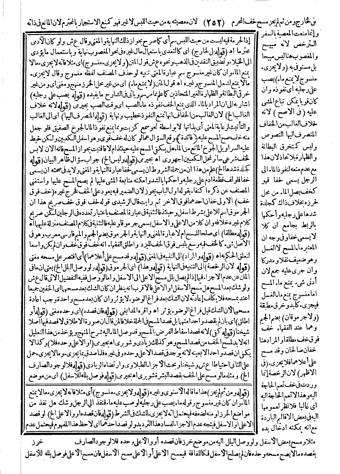 بُجَيْرِمِيٌّ (قَوْلُهُ أَوْ الْأَعْلَى وَحْدَهُ فَلَا) وَكَذَا لَا يَكْفِي إنْ قَصَدَ وَاحِدًا لَا بِعَيْنِهِ؛ لِأَنَّهُ يُوجَدُ فِي قَصْدِ الْأَعْلَى وَحْدَهُ وَفِي غَيْرِهِ فَلَمَّا صَدَقَ بِمَا يُجْزِئُ وَمَا لَا يُجْزِئُ حُمِلَ عَلَى الثَّانِي احْتِيَاطًا ع ش وَشَيْخُنَا وَبَحَثَ الْإِجْزَاءَ الطَّبَلَاوِيُّ وَارْتَضَاهُ الزِّيَادِيُّ (قَوْلُهُ فَلَا لِوُجُودِ الصَّارِفِ إلَخْ) وَمِثْلُهُ مَا لَوْ مَسَحَ عَلَى الْخُفِّ بِقَصْدِ الْبَشَرَةِ شَوْبَرِيٌّ اهـ.