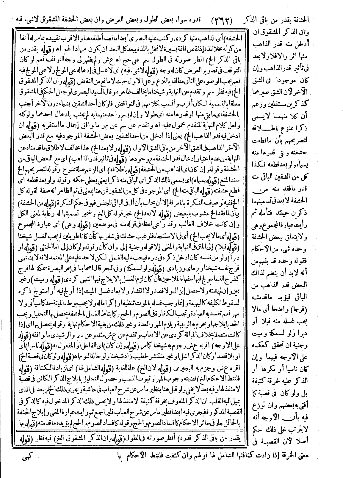 ـــــــــــــــــــــــــــــQالْحَشَفَةِ) أَيْ الذَّاهِبَ مِنْهَا كُرْدِيٌّ وَكَتَبَ عَلَيْهِ الْبَصْرِيُّ أَيْضًا مَا نَصُّهُ أَطْلَقَهُ هُنَا وَالْأَقْرَبُ تَقْيِيدُهُ بِمَا مَرَّ لَهُ آنِفًا مِنْ كَوْنِهِ مُخِلًّا لِلَّذَّةِ إذْ نَقْصُ فَلْقَةٍ يَسِيرَةٍ لَا تُخِلُّ بِاللَّذَّةِ يَبْعُدُ كُلَّ الْبُعْدِ أَنْ يَكُونَ مُرَادًا لَهُمْ اهـ.