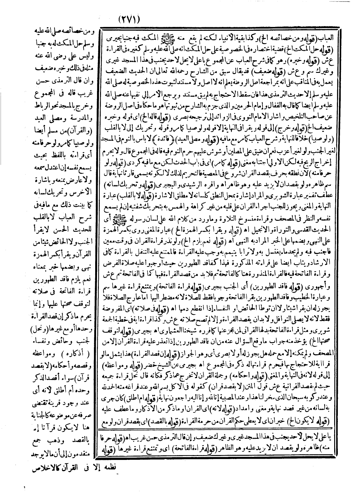 ـــــــــــــــــــــــــــــS «يَا عَلِيُّ لَا يَحِلُّ لِأَحَدٍ يُجْنِبُ فِي هَذَا الْمَسْجِدِ غَيْرِي وَغَيْرَك» ضَعِيفٌ وَإِنْ قَالَ التِّرْمِذِيُّ حَسَنٌ غَرِيبٌ اهـ.