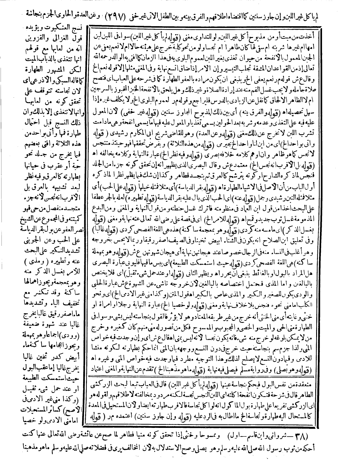 ـــــــــــــــــــــــــــــSمُنْعَقِدَةٌ مِنْ نَفْسِ الْبَوْلِ فَيُحْكَمُ بِنَجَاسَةِ عَيْنِهَا (قَوْلُهُ لَمْ يَأْكُلْ غَيْرَ اللَّبَنِ) قَالَ فِي الْعُبَابِ تَبَعًا لِبَحْثِ الزَّرْكَشِيّ الطَّاهِرِ قَالَ فِي شَرْحِهِ فَتَكُونُ إنْفَحَةُ آكِلَتِهِ أَيْ اللَّبَنِ النَّجِسِ نَجِسَةٌ لَكِنَّهُ مَرْدُودٌ بِمُخَالَفَتِهِ لِإِطْلَاقِهِمْ وَلِقَوْلِهِ هُوَ أَيْ الزَّرْكَشِيُّ تَفْرِيعًا عَلَى طَهَارَةِ بَوْلِ الْمَأْكُولِ أَنَّهُ لَوْ أَكَلَ نَجَاسَةً فَالْأَقْرَبُ طَهَارَتُهُ أَيْضًا وَلِأَنَّ الْمُسْتَحِيلَ فِي الْمَعِدَةِ كَالْمُسْتَحَالِ إلَيْهِ طَهَارَةً وَنَجَاسَةً إلَخْ مَا أَطَالَ بِهِ فِي الرَّدِّ عَلَيْهِ (قَوْلُهُ وَإِنْ جَاوَزَ سَنَتَيْنِ) اعْتَمَدَهُ م ر.