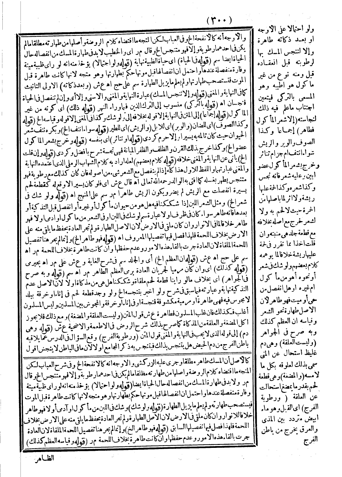 ـــــــــــــــــــــــــــــQوَالْأَوْجَهُ أَنَّهُ كَالْإِنْفَحَةِ إلَخْ وَفِي شَرْحِ الْعُبَابِ لَكِنَّ الْمُتَّجَهَ مَا اقْتَضَاهُ كَلَامُ الرَّوْضَةِ وَأَصْلِهَا مِنْ طَهَارَتِهِ مُطْلَقًا مَا لَمْ يَكُنْ فِي أَحَدِهِمَا رُطُوبَةٌ وَإِلَّا فَهُوَ مُتَنَجِّسٌ إلَخْ وَقَالَ م ر أَيْ وَالْخَطِيبُ لَا بُدَّ فِي طَهَارَةِ الْمِسْكِ مِنْ انْفِصَالِهِ حَالَ الْحَيَاةِ أَيْضًا سم (قَوْلُهُ فِي الْحَيَاةِ) أَيْ حَيَاةِ الظَّبْيَةِ نِهَايَةٌ (قَوْلُهُ وَلَوْ احْتِمَالًا) يُؤْخَذُ مِنْهُ أَنَّهُ لَوْ رَأَى ظَبْيَةً مَيِّتَةً وَفَأْرَةً مُنْفَصِلَةً عِنْدَهَا وَاحْتُمِلَ أَنَّ انْفِصَالَهَا قَبْلَ مَوْتِهَا حُكِمَ بِطَهَارَتِهَا وَهُوَ مُتَّجَهٌ؛ لِأَنَّهَا كَانَتْ طَاهِرَةً قَبْلَ الْمَوْتِ فَتُسْتَصْحَبُ طَهَارَتُهَا وَلَمْ يُعْلَمْ مَا يُزِيلُ الطَّهَارَةَ سم عَلَى حَجّ اهـ ع ش (وَبَعْدَ ذَكَاتِهِ) الْأَوْلَى التَّأْنِيثُ كَمَا فِي النِّهَايَةِ وَالْمُغْنِي (قَوْلُهُ وَإِلَّا لَتَنَجَّسَ الْمِسْكُ) عِبَارَةُ النِّهَايَةِ وَالْمُغْنِي وَالْأَسْنَى وَإِلَّا أَيْ وَإِنْ لَمْ تَنْفَصِلْ فِي الْحَيَاةِ فَنَجِسَانِ اهـ. (قَوْلُهُ بِالتُّرْكِيِّ) مَنْسُوبٌ إلَى التُّرْكِ الَّذِينَ فِيمَا وَرَاءَ النَّهْرِ (قَوْلُهُ ذَلِكَ) أَيْ كَوْنُهُ مِنْ غَيْرِ الْمَأْكُولِ.