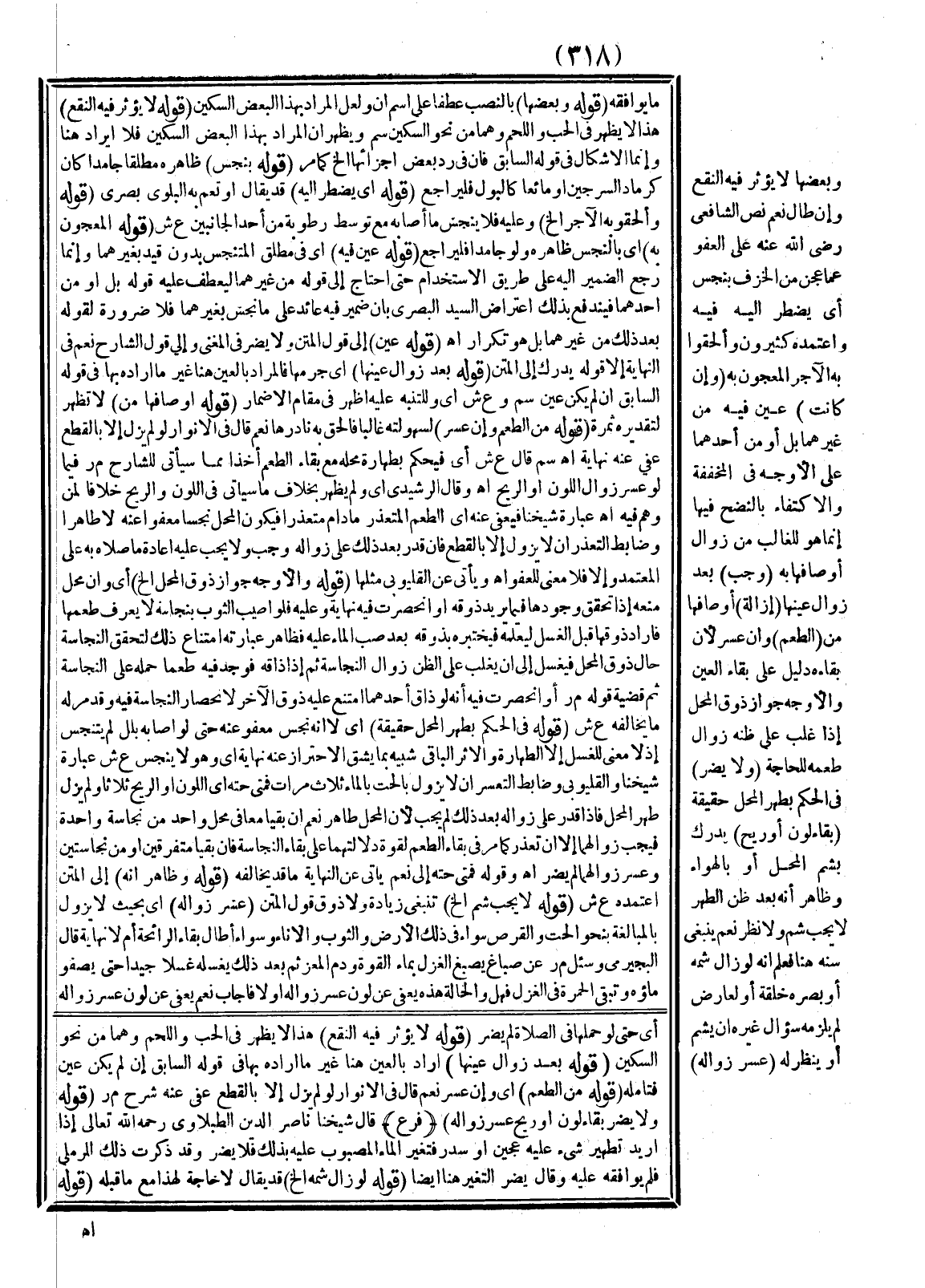 ـــــــــــــــــــــــــــــQمَا يُوَافِقُهُ (قَوْلُهُ وَبَعْضَهَا) بِالنَّصْبِ عَطْفًا عَلَى اسْمِ إنَّ وَلَعَلَّ الْمُرَادَ بِهَذَا الْبَعْضِ السِّكِّينُ (قَوْلُهُ لَا يُؤَثِّرُ فِيهِ النَّقْعُ) هَذَا لَا يَظْهَرُ فِي الْحَبِّ وَاللَّحْمِ وَهُمَا مِنْ نَحْوِ السِّكِّينِ سم وَيَظْهَرُ أَنَّ الْمُرَادَ بِهَذَا الْبَعْضِ السِّكِّينُ فَلَا إيرَادَ هُنَا وَإِنَّمَا الْإِشْكَالُ فِي قَوْلِهِ السَّابِقِ فَإِنَّ فِي رَدِّ بَعْضِ أَجْزَائِهَا إلَخْ كَمَا مَرَّ (قَوْلُهُ بِنَجِسٍ) ظَاهِرُهُ مُطْلَقًا جَامِدًا كَانَ كَرَمَادِ السِّرْجِينِ أَوْ مَائِعًا كَالْبَوْلِ فَلْيُرَاجَعْ (قَوْلُهُ أَيْ يُضْطَرُّ إلَيْهِ) قَدْ يُقَالُ أَوْ تَعُمُّ بِهِ الْبَلْوَى بَصْرِيٌّ (قَوْلُهُ وَأَلْحَقُوا بِهِ الْآجُرَّ إلَخْ) وَعَلَيْهِ فَلَا يَنْجَسُ مَا أَصَابَهُ مَعَ تَوَسُّطِ رُطُوبَةٍ مِنْ أَحَدِ الْجَانِبَيْنِ ع ش.
