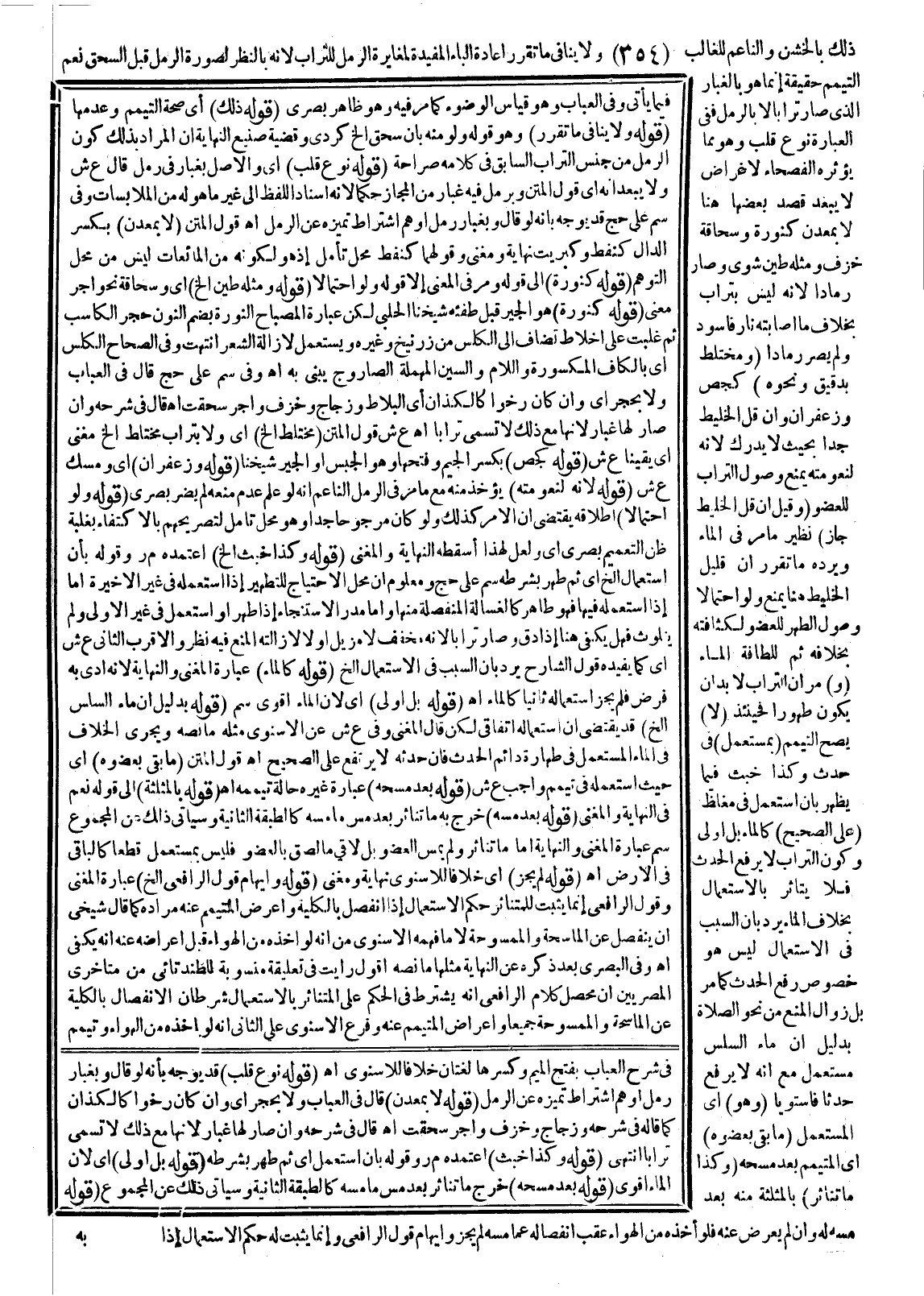 ـــــــــــــــــــــــــــــQفِيمَا يَأْتِي وَفِي الْعُبَابِ وَهُوَ قِيَاسُ الْوُضُوءِ كَمَا مَرَّ فِيهِ وَهُوَ ظَاهِرٌ بَصْرِيٌّ. (قَوْلُهُ ذَلِكَ) أَيْ صِحَّةُ التَّيَمُّمِ وَعَدَمُهَا. (قَوْلُهُ وَلَا يُنَافِي مَا تَقَرَّرَ) وَهُوَ قَوْلُهُ وَلَوْ مِنْهُ بِأَنْ سُحِقَ إلَخْ كُرْدِيٌّ وَقَضِيَّةُ صَنِيعِ النِّهَايَةِ أَنَّ الْمُرَادَ بِذَلِكَ كَوْنُ الرَّمْلِ مِنْ جِنْسِ التُّرَابِ السَّابِقِ فِي كَلَامِهِ صَرَاحَةً. (قَوْلُهُ نَوْعُ قَلْبٍ) أَيْ وَالْأَصْلُ بِغُبَارٍ فِي رَمْلٍ قَالَ ع ش وَلَا يَبْعُدُ أَنَّهُ أَيْ قَوْلَ الْمَتْنِ وَبِرَمْلٍ فِيهِ غُبَارٌ مِنْ الْمَجَازِ حُكْمًا لِأَنَّهُ إسْنَادُ اللَّفْظِ إلَى غَيْرِ مَا هُوَ لَهُ مِنْ الْمُلَابَسَاتِ وَفِي سم عَلَى حَجّ قَدْ يُوَجَّهُ بِأَنَّهُ لَوْ قَالَ وَبِغُبَارِ رَمْلٍ أَوْهَمَ اشْتِرَاطَ تَمَيُّزِهِ عَنْ الرَّمْلِ انْتَهَى اهـ قَوْلُ الْمَتْنِ (لَا بِمَعْدِنٍ) بِكَسْرِ الدَّالِ كَنِفْطٍ وَكِبْرِيتٍ نِهَايَةٌ وَمُغْنِي وَقَوْلُهُمَا كَنِفْطٍ مَحَلُّ تَأَمُّلٍ إذَا هُوَ لِكَوْنِهِ مِنْ الْمَائِعَاتِ لَيْسَ مِنْ مَحَلِّ التَّوَهُّمِ. (قَوْلُهُ كَنُورَةِ) إلَى قَوْلِهِ وَمَرَّ فِي الْمُغْنِي إلَّا قَوْلَهُ وَلَوْ احْتِمَالًا. (قَوْلُهُ وَمِثْلُهُ طِينٌ إلَخْ) أَيْ وَسَحَاقَةُ نَحْوِ آجُرٍّ مُغْنِي. (قَوْلُهُ كَنُورَةٍ) هُوَ الْجِيرُ قَبْلَ طَفْئِهِ شَيْخُنَا الْحَلَبِيُّ لَكِنَّ عِبَارَةَ الْمِصْبَاحِ النُّورَةُ بِضَمِّ النُّونِ حَجَرُ الْكِلْسِ، ثُمَّ غَلَبَتْ عَلَى أَخْلَاطٍ تُضَافُ إلَى الْكِلْسِ مِنْ زَرْنِيخٍ وَغَيْرِهِ وَيُسْتَعْمَلُ لِإِزَالَةِ الشَّعْرِ انْتَهَتْ وَفِي الصِّحَاحِ الْكِلْسُ أَيْ بِالْكَافِ الْمَكْسُورَةِ وَاللَّامِ وَالسِّينِ الْمُهْمَلَةِ الصَّارُوجُ يُبْنَى بِهِ اهـ وَفِي سم عَلَى حَجّ قَالَ فِي الْعُبَابِ وَلَا بِحَجَرٍ أَيْ وَإِنْ كَانَ رَخْوًا كَالْكَذَّانِ أَيْ الْبَلَاطِ وَزُجَاجٍ وَخَزَفٍ وَآجُرٍّ سُحِقَتْ اهـ قَالَ فِي شَرْحِهِ وَإِنْ صَارَ لَهَا غُبَارٌ لِأَنَّهَا مَعَ ذَلِكَ لَا تُسَمَّى تُرَابًا اهـ اهـ ع ش.