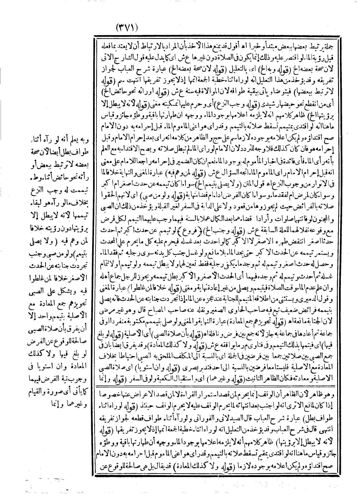 ـــــــــــــــــــــــــــــQجُمْلَةِ يَرْتَبِطُ بَعْضُهَا بِبَعْضٍ مُبْتَدَأٌ وَخَبَرٌ اهـ أَقُولُ قَدْ يُمْنَعُ هَذَا الْأَخْذُ بِأَنَّ الْمُرَادَ بِالِارْتِبَاطِ أَنْ لَا يَعْتَدَّ بِمَا فَعَلَهُ قَبْلَ رُؤْيَةِ الْمَاءِ لَوْ اقْتَصَرَ عَلَيْهِ وَذَلِكَ إنَّمَا يَكُونُ فِي الصَّلَاةِ دُونَ غَيْرِهَا ع ش أَيْ كَمَا يَدُلُّ عَلَيْهِ قَوْلُ الشَّارِحِ الْآتِي لِأَنَّ صِحَّةَ بَعْضِهِ إلَخْ. (قَوْلُهُ وَبِهِ إلَخْ) أَيْ بِالتَّعْلِيلِ. (قَوْلُهُ لِأَنَّ صِحَّةَ بَعْضِهِ إلَخْ) عِبَارَةُ شَرْحِ الْعُبَابِ لِجَوَازِ تَفْرِيقِهِ، وَقَدْ يُؤْخَذُ مِنْ هَذَا التَّعْلِيلِ أَنَّهُ لَوْ رَآهُ أَثْنَاءَ خُطْبَةِ الْجُمُعَةِ أَتَمَّهَا إذْ لَا يَجُوزُ تَفْرِيقُهَا انْتَهَتْ اهـ سم. (قَوْلُهُ لَا تَرْتَبِطُ بِبَعْضِهَا) فَيَتَوَضَّأُ وَيَأْتِي بِبَقِيَّةِ طَوَافِهِ لِأَنَّ الْمُوَالَاةَ فِيهِ سُنَّةٌ ع ش. (قَوْلُهُ أَوْ رَأَتْهُ نَحْوُ حَائِضٍ إلَخْ) أَيْ مَنْ انْقَطَعَ نَحْوُ حَيْضِهَا رَشِيدِيٌّ. (قَوْلُهُ وَجَبَ النَّزْعُ) أَيْ وَحَرُمَ عَلَيْهَا تَمْكِينُهُ مُغْنٍ. (قَوْلُهُ لِأَنَّهُ لَا يَبْطُلُ إلَّا بِرُؤْيَتِهَا إلَخْ) ظَاهِرُ كَلَامِهِمْ أَنَّهُ لَا يَلْزَمُهُ إعْلَامُهَا بِوُجُودِ الْمَاءِ وَوَجْهُهُ أَنَّ طَهَارَتَهَا بَاقِيَةٌ وَوَطْؤُهُ جَائِزٌ وَقِيَاسُ مَا هُنَا أَنَّهُ لَوْ اقْتَدَى بِمُتَيَمِّمٍ تَسْقُطُ صَلَاتُهُ بِالتَّيَمُّمِ، وَقَدْ رَأَى هُوَ أَعْنِي الْمَأْمُومَ الْمَاءَ قَبْلَ إحْرَامِهِ بِهِ دُونَ الْإِمَامِ صَحَّ اقْتِدَاؤُهُ وَلَمْ يَكُنْ إعْلَامُهُ بِوُجُودِهِ لَازِمًا سم عَلَى حَجّ وَالظَّاهِرُ مِنْ كَلَامِهِ أَنَّهُ رَأَى بَعْدَ إحْرَامِ الْإِمَامِ وَقَبْلَ إحْرَامِهِ هُوَ فَإِنْ كَانَ كَذَلِكَ فَلَا وَجْهَ لِلتَّرَدُّدِ لِأَنَّ الْإِمَامَ لَوْ رَأَى الْمَاءَ لَمْ تَبْطُلْ صَلَاتُهُ وَيَصِحُّ الِاقْتِدَاءُ بِهِ مَعَ الْعِلْمِ بِأَنَّهُ رَأَى الْمَاءَ فَأَيُّ فَائِدَةٍ فِي إخْبَارِ الْمَأْمُومِ لَهُ بِوُجُودِ الْمَاءِ نَعَمْ إنْ كَانَ الضَّمِيرُ فِي إحْرَامِهِ رَاجِعًا لِلْإِمَامِ عَلَى مَعْنَى أَنَّهُ قَبْلَ إحْرَامِ الْإِمَامِ رَأَى الْمَأْمُومُ الْمَاءَ اتَّجَهَ السُّؤَالُ ع ش. (قَوْلُهُ لِمَنْ وَهَمَ فِيهِ) عِبَارَةُ الْمُغْنِي وَالنِّهَايَةِ خِلَافًا لِمَا فِي الْأَنْوَارِ مِنْ وُجُوبِ النَّزْعِ اهـ.