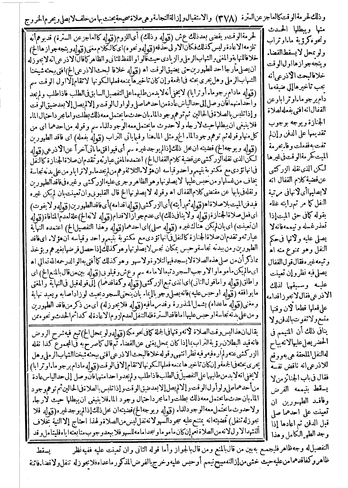 وَأَمَّا مُجَرَّدُ احْتِمَالِ وُجُودِ الْمَاءِ فَلَا يَنْبَغِي أَنْ يُبْطِلَهَا حَيْثُ لَا رَجَاءَ وَلَا حُدُوثَ مَا يُحْتَمَلُ مَعَهُ الْوُجُودُ لِلْمَاءِ. (قَوْلُهُ وَيُوَجَّهُ إلَخْ) قَضِيَّتُهُ أَنَّ مَحَلَّ ذَلِكَ إذَا لَمْ يُوجَدْ غَيْرُهُ. (قَوْلُهُ فَلَا يَجُوزُ لَهُ تَنَفُّلٌ) قَضِيَّتُهُ أَنَّهُ يَمْتَنِعُ عَلَيْهِ سُجُودُ السَّهْوِ؛ لِأَنَّهُ نَفْلٌ لَيْسَ مِنْ الصَّلَاةِ وَلِهَذَا احْتَاجَ إلَى النِّيَّةِ بِخِلَافِ التَّشَهُّدِ الْأَوَّلِ؛ لِأَنَّهُ مِنْ الصَّلَاةِ نَعَمْ إنْ كَانَ مَأْمُومًا وَسَجَدَ إمَامُهُ لِلسَّهْوِ فَلَا يَبْعُدُ وُجُوبُ مُتَابَعَتِهِ إيَّاهُ فَلْيُتَأَمَّلْ، وَقَدْ