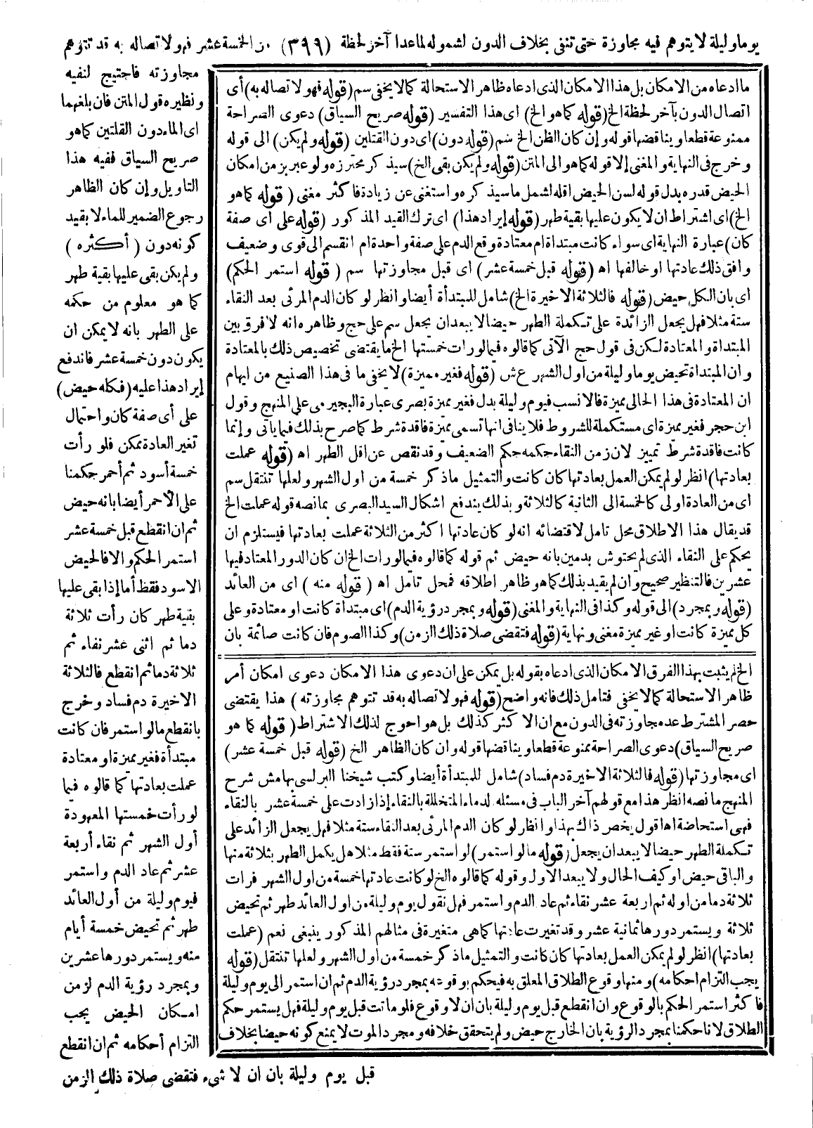 يَوْمًا وَلَيْلَةً لَا يُتَوَهَّمُ فِيهِ مُجَاوَزَةٌ حَتَّى تُنْفَى بِخِلَافِ الدُّونِ لِشُمُولِهِ لِمَا عَدَا آخِرَ لَحْظَةٍ مِنْ الْخَمْسَةَ عَشَرَ فَهُوَ لِاتِّصَالِهِ بِهِ قَدْ تُتَوَهَّمُ مُجَاوَزَتُهُ فَاحْتِيجَ لِنَفْيِهِ