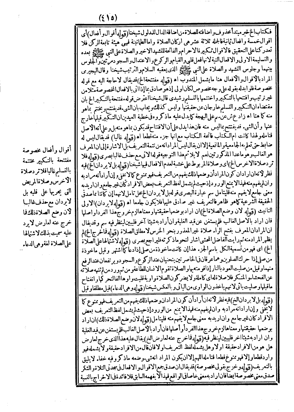 أَقْوَالٌ وَأَفْعَالٌ مَخْصُوصَةٌ مُفْتَتَحَةٌ بِالتَّكْبِيرِ مُخْتَتَمَةٌ بِالتَّسْلِيمِ غَالِبًا فَلَا تَرِدُ صَلَاةُ الْأَخْرَسِ وَصَلَاةُ الْمَرِيضِ الَّتِي يُجْرِيهَا عَلَى قَلْبِهِ، بَلْ لَا يَرِدَانِ مَعَ حَذْفِ غَالِبًا؛ لِأَنَّ وَضْعَ الصَّلَاةِ ذَلِكَ فَمَا خَرَجَ عَنْهُ لِعَارِضٍ لَا يَرِدُ عَلَيْهِ سُمِّيَتْ بِذَلِكَ لِاشْتِمَالِهَا عَلَى الصَّلَاةِ لُغَةً وَهِيَ الدُّعَاءُ