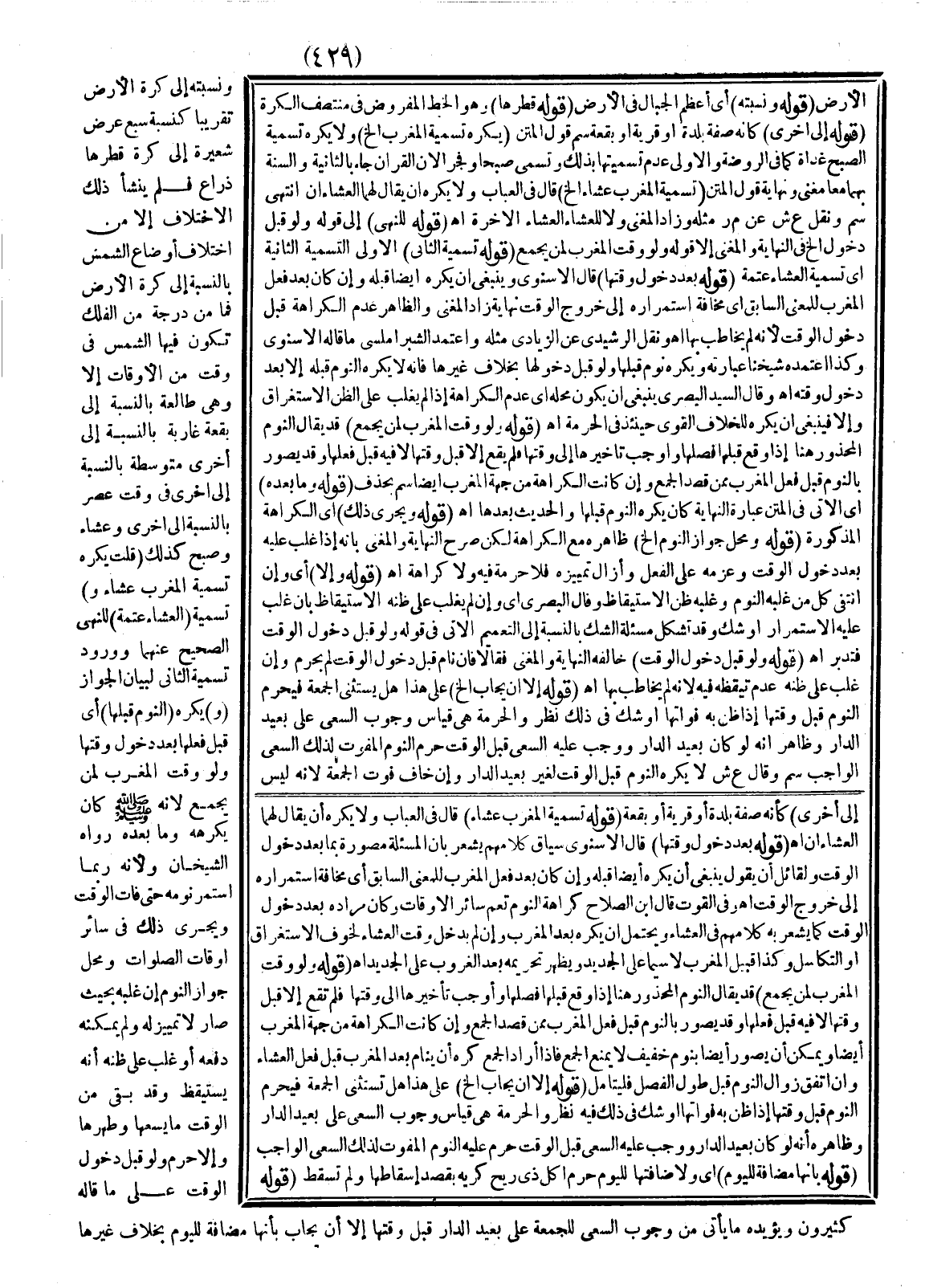 وَنِسْبَتُهُ إلَى كُرَةِ الْأَرْضِ تَقْرِيبًا كَنِسْبَةِ سَبْعٍ عَرْضَ شَعِيرَةٍ إلَى كُرَةٍ قُطْرُهَا ذِرَاعٌ فَلَمْ يَنْشَأْ ذَلِكَ الِاخْتِلَافُ إلَّا مِنْ اخْتِلَافِ أَوْضَاعِ الشَّمْسِ بِالنِّسْبَةِ إلَى كُرَةِ الْأَرْضِ فَمَا مِنْ دَرَجَةٍ مِنْ الْفُلْكِ تَكُونُ فِيهَا الشَّمْسُ فِي وَقْتٍ مِنْ الْأَوْقَاتِ إلَّا وَهِيَ طَالِعَةٌ بِالنِّسْبَةِ إلَى بُقْعَةٍ غَارِبَةٍ بِالنِّسْبَةِ إلَى أُخْرَى مُتَوَسِّطَةٍ بِالنِّسْبَةِ إلَى أُخْرَى فِي وَقْتِ عَصْرٍ بِالنِّسْبَةِ إلَى أُخْرَى وَعِشَاءٍ وَصُبْحٍ كَذَلِكَ