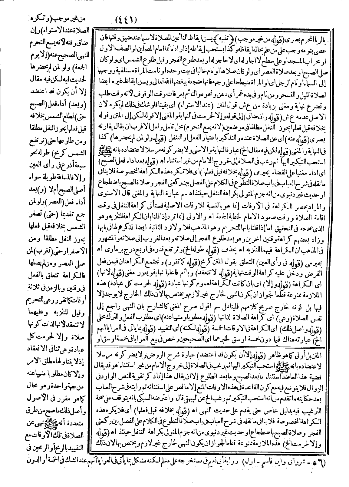 وَأَصْلُ ذَلِكَ مَا صَحَّ مِنْ طُرُقٍ مُتَعَدِّدَةٍ «أَنَّهُ - صَلَّى اللَّهُ عَلَيْهِ وَسَلَّمَ - نَهَى عَنْ الصَّلَاةِ فِي تِلْكَ الْأَوْقَاتِ» مَعَ التَّقْيِيدِ بِالرُّمْحِ، أَوْ الرُّمْحَيْنِ فِي رِوَايَةِ أَبِي نُعَيْمٍ فِي مُسْتَخْرَجِهِ عَلَى مُسْلِمٍ لَكِنَّهُ مُشْكِلٌ بِمَا يَأْتِي فِي الْعَرَايَا أَنَّهُمْ عِنْدَ الشَّكِّ فِي الْخَمْسَةِ أَوْ الدُّونِ