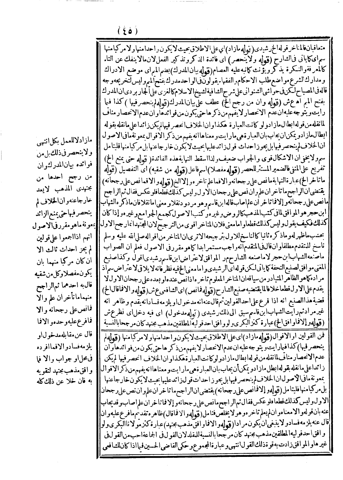 ع ش (قَوْلُهُ وَأَنَّ مَنْ رَجَّحَ إلَخْ) عُطِفَ عَلَى بَيَانِ الْمُدْرَكِ (قَوْلُهُ لَمْ يَنْحَصِرْ فِيهَا) كَذَا فِيمَا رَأَيْت وَيَتَوَجَّهُ عَلَيْهِ أَنَّ عَدَمَ الِانْحِصَارِ لَا يُفْهَمُ مِنْ ذِكْرِهَا حَتَّى يَكُونَ مِنْ فَوَائِدِهَا، وَأَنَّ عَدَمَ الِانْحِصَارِ مَنَافٍ لِمَا نَقَلَهُ مِنْ قَوْلِهِ إبْطَالُ مَا زَادَ وَلَوْ كَانَتْ الْعِبَارَةُ هَكَذَا وَأَنَّ الْخِلَافَ انْحَصَرَ فِيهَا لَمْ يَكُنْ زَائِدًا عَلَى مَا نَقَلَهُ بِقَوْلِهِ إبْطَالُ مَا زَادَ، وَيُمْكِنُ أَنْ يُجَابَ بِأَنَّ الْعِبَارَةَ هِيَ مَا رَأَيْت وَمَعْنَاهَا أَنَّهُ يُفْهَمُ مِنْ ذِكْرِ الْأَقْوَالِ بِمَعُونَةِ مَا فِي الْأُصُولِ أَنَّ الْخِلَافَ لَمْ يَنْحَصِرْ فِيهَا بَلْ يَجُوزُ إحْدَاثُ قَوْلٍ زَائِدٍ عَلَيْهَا بِحَيْثُ لَا يَكُونُ خَارِجًا عَنْهَا بَلْ مُرَكَّبًا مِنْهَا فَلْيُتَأَمَّلْ سم وَلَا يَخْفَى أَنَّ الْإِشْكَالَ قَوِيٌّ، وَالْجَوَابُ ضَعِيفٌ وَلِذَا أَسْقَطَ النِّهَايَةُ هَذِهِ الْفَائِدَةَ (قَوْلُهُ حَتَّى يَمْنَعَ إلَخْ) تَفْرِيعٌ عَلَى الْمَنْفِيِّ فَالضَّمِيرُ الْمُسْتَتِرُ لِلْحَصْرِ (قَوْلُهُ مُفَصِّلًا) اسْمُ فَاعِلٍ (قَوْلُهُ مِنْ شِقَّيْهِ) أَيْ التَّفْصِيلِ (قَوْلُهُ مَا تَأَخَّرَ إلَخْ) عِبَارَةُ النِّهَايَةِ مَا نُصَّ عَلَى رُجْحَانِهِ وَإِلَّا فَمَا عُلِمَ تَأَخُّرُهُ وَإِلَّا إلَخْ (قَوْلُهُ وَإِلَّا فَمَا نُصَّ عَلَى رُجْحَانِهِ) يَقْتَضِي أَنَّ الرَّاجِحَ مَا تَأَخَّرَ إنْ عُلِمَ وَإِنْ نُصَّ عَلَى رُجْحَانِ الْأَوَّلِ وَلَيْسَ كَذَلِكَ قَطْعًا فَلَوْ عَكَسَ فَقَالَ، ثُمَّ الرَّاجِحُ مَا نُصَّ عَلَى رُجْحَانِهِ وَإِلَّا فَمَا تَأَخَّرَ إنْ عُلِمَ أَصَابَ، قَالَهُ ابْنُ قَاسِمٍ وَهُوَ مَرْدُودٌ نَقْلًا وَمَعْنًى أَمَّا نَقْلًا فَإِنَّ مَا ذَكَرَهُ الشِّهَابُ ابْنُ حَجَرٍ هُوَ الْمُوَافِقُ لِمَا فِي كُتُبِ الْمَذْهَبِ كَالرَّوْضِ وَغَيْرِهِ وَكُتُبِ الْأُصُولِ كَجَمْعِ الْجَوَامِعِ وَغَيْرِهِ وَإِذَا كَانَ كَذَلِكَ فَكَيْفَ يَقُولُ وَلَيْسَ كَذَلِكَ قَطْعًا.