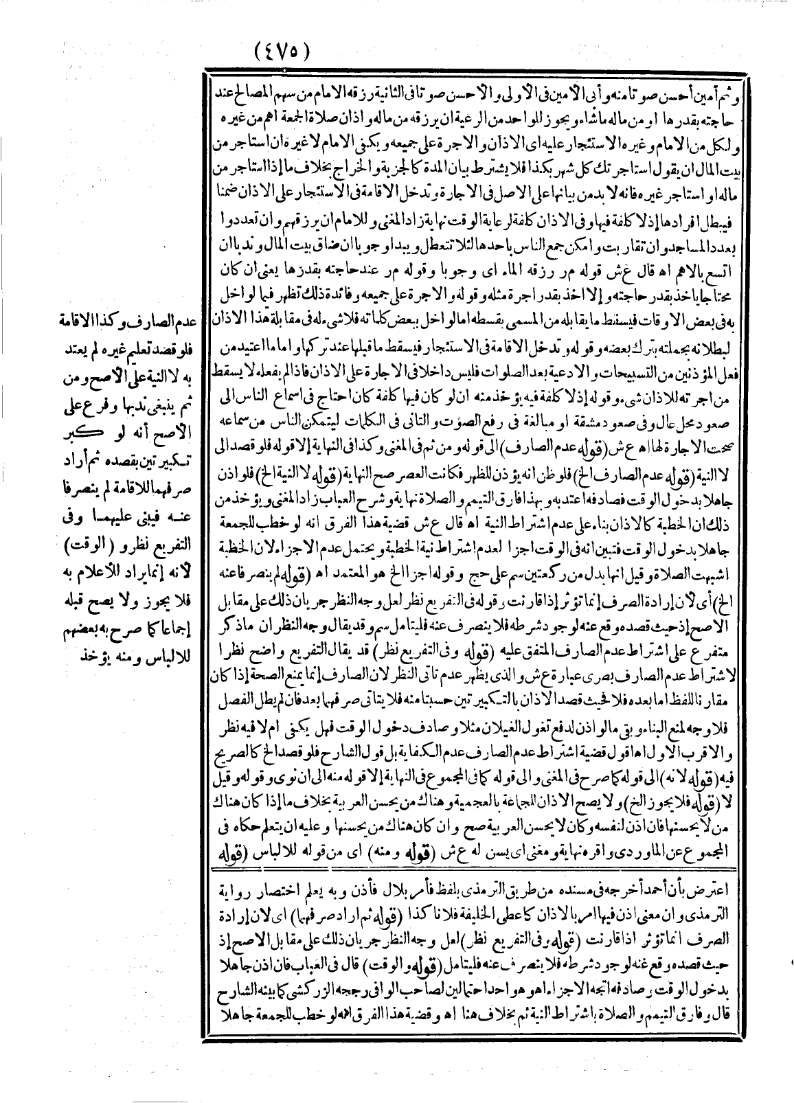 عَدَمُ الصَّارِفِ، وَكَذَا الْإِقَامَةُ فَلَوْ قَصَدَ تَعْلِيمَ غَيْرِهِ لَمْ يُعْتَدَّ بِهِ لَا النِّيَّةُ عَلَى الْأَصَحِّ وَمِنْ ثَمَّ يَنْبَغِي نَدْبُهَا وَفَرَّعَ عَلَى الْأَصَحِّ أَنَّهُ لَوْ كَبَّرَ تَكْبِيرَتَيْنِ بِقَصْدِهِ، ثُمَّ أَرَادَ صَرْفَهُمَا لِلْإِقَامَةِ لَمْ يَنْصَرِفَا عَنْهُ فَيَبْنِي عَلَيْهِمَا وَفِي التَّفْرِيعِ نَظَرٌ وَ (الْوَقْتُ) ؛ لِأَنَّهُ إنَّمَا يُرَادُ لِلْإِعْلَامِ بِهِ فَلَا يَجُوزُ وَلَا يَصِحُّ قَبْلَهُ إجْمَاعًا كَمَا صَرَّحَ بِهِ بَعْضُهُمْ لِلْإِلْبَاسِ وَمِنْهُ يُؤْخَذُ