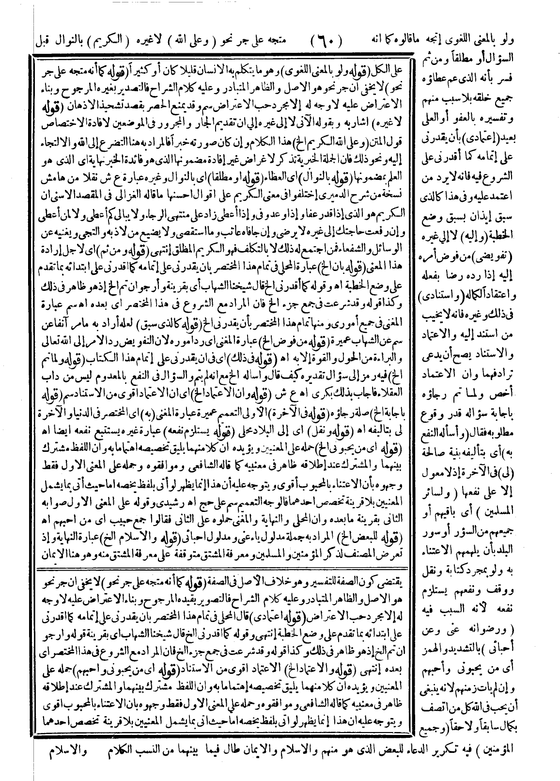 وَلَوْ بِالْمَعْنَى اللُّغَوِيِّ اتَّجَهَ مَا قَالُوهُ كَمَا أَنَّهُ مُتَّجَهٌ عَلَى جَرٍّ نَحْوُ (وَعَلَى اللَّهِ) لَا غَيْرِهِ (الْكَرِيمِ) بِالنَّوَالِ قَبْلَ السُّؤَالِ أَوْ مُطْلَقًا وَمِنْ ثَمَّ فُسِّرَ بِأَنَّهُ الَّذِي عَمَّ عَطَاؤُهُ جَمِيعَ خَلْقِهِ بِلَا سَبَبٍ مِنْهُمْ وَتَفْسِيرُهُ بِالْعَفُوِّ أَوْ الْعَلِيِّ بَعِيدٌ (اعْتِمَادِي) بِأَنْ يُقْدِرَنِي عَلَى إتْمَامِهِ كَمَا أَقْدَرنِي عَلَى الشُّرُوعِ فِيهِ فَإِنَّهُ لَا يَرُدُّ مَنْ اعْتَمَدَ عَلَيْهِ، وَفِي هَذَا كَاَلَّذِي سَبَقَ إيذَانٌ بِسَبْقِ وَضْعِ الْخُطْبَةِ (وَإِلَيْهِ) لَا إلَى غَيْرِهِ (تَفْوِيضِي) مِنْ فَوَّضَ أَمْرَهُ إلَيْهِ إذَا رَدَّهُ رِضًا بِفِعْلِهِ وَاعْتِقَادًا لِكَمَالِهِ (وَاسْتِنَادِي) فِي ذَلِكَ وَغَيْرِهِ فَإِنَّهُ لَا يَخِيبُ مَنْ اسْتَنَدَ إلَيْهِ وَالِاعْتِمَادُ وَالِاسْتِنَادُ يَصِحُّ أَنْ يُدَّعَى تَرَادُفُهُمَا، وَأَنَّ الِاعْتِمَادَ أَخَصُّ وَلَمَّا تَمَّ رَجَاؤُهُ بِإِجَابَةِ سُؤَالِهِ قَدَّرَ وُقُوعَ مَطْلُوبِهِ.