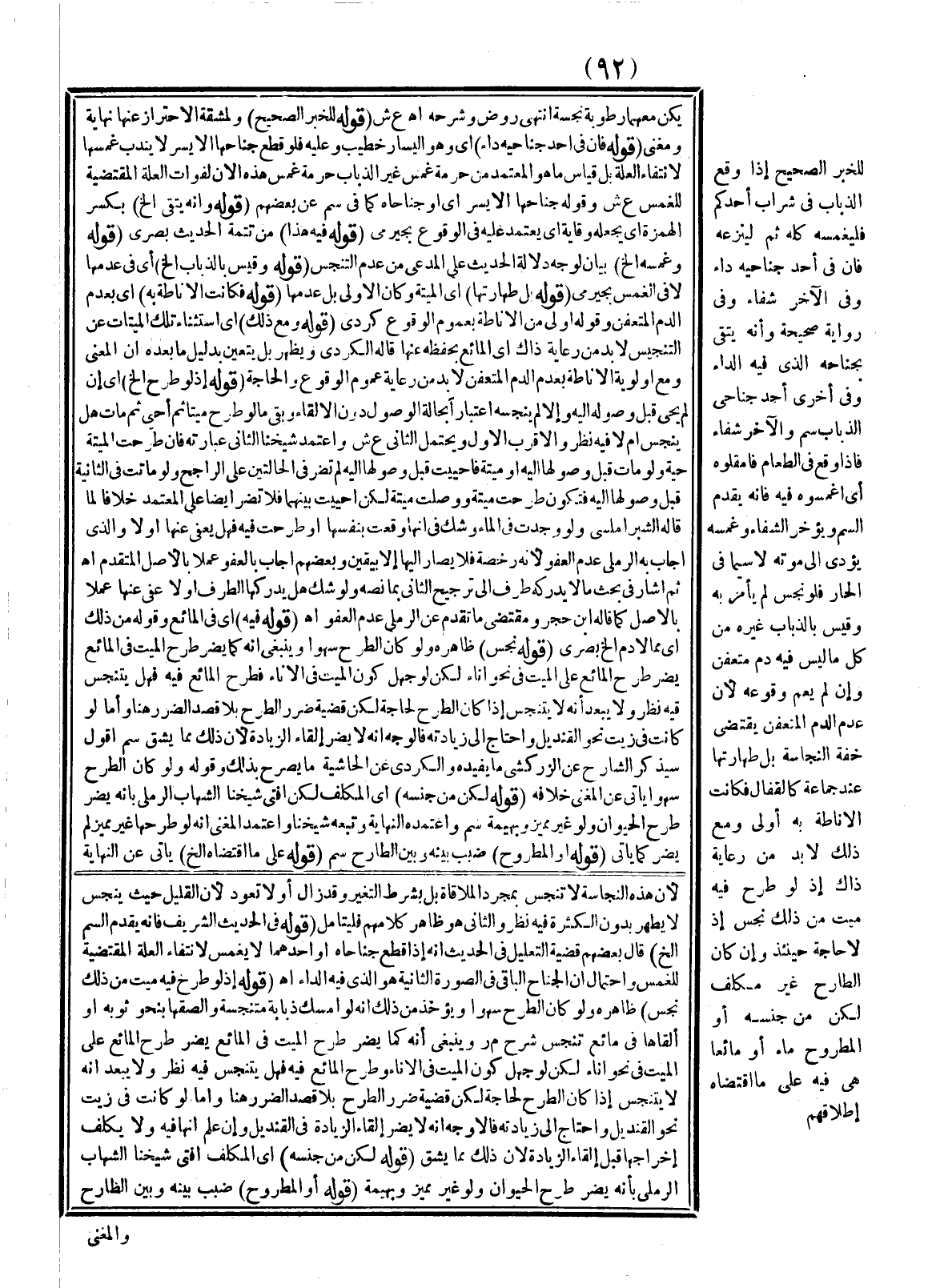 (قَوْلُهُ فِي الْحَدِيثِ الشَّرِيفِ فَإِنَّهُ يُقَدِّمُ السُّمَّ إلَخْ) قَالَ بَعْضُهُمْ قَضِيَّةُ التَّعْلِيلِ فِي الْحَدِيثِ أَنَّهُ إذَا قُطِعَ جَنَاحَاهُ أَوْ أَحَدُهُمَا لَا يُغْمَسُ لِانْتِفَاءِ الْعِلَّةِ الْمُقْتَضِيَةِ لِلْغَمْسِ وَاحْتِمَالِ أَنَّ الْجَنَاحَ الْبَاقِيَ فِي الصُّورَةِ الثَّانِيَةِ هُوَ الَّذِي فِيهِ الدَّاءُ اهـ.