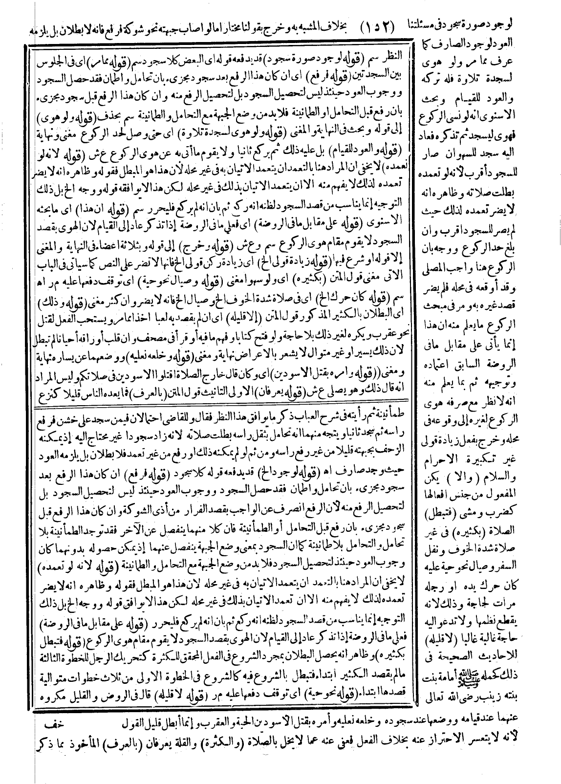 ـــــــــــــــــــــــــــــSطُمَأْنِينَةٍ ثُمَّ رَأَيْته فِي شَرْحِ الْعُبَابِ ذَكَرَ مَا يُوَافِقُ هَذَا النَّظَرَ فَقَالَ وَلِلْقَاضِي احْتِمَالَانِ فِيمَنْ سَجَدَ عَلَى خَشِنٍ فَرَفَعَ رَأْسَهُ ثُمَّ سَجَدَ ثَانِيًا وَيَتَّجِهُ مِنْهُمَا أَنَّهُ إنْ تَحَامَلَ بِثِقَلِ رَأْسِهِ بَطَلَتْ صَلَاتُهُ؛ لِأَنَّهُ زَادَ سُجُودًا غَيْرَ مُحْتَاجٍ إلَيْهِ إذْ يُمْكِنُهُ الزَّحْفُ بِجَبْهَتِهِ قَلِيلًا مِنْ غَيْرِ رَفْعِ رَأْسِهِ وَمِنْ ثَمَّ لَوْ لَمْ يُمْكِنْهُ ذَلِكَ أَوْ رَفَعَ مِنْ غَيْرِ تَعَمُّدٍ فَلَا بُطْلَانَ بَلْ يَلْزَمُهُ الْعَوْدُ حَيْثُ وُجِدَ صَارِفٌ اهـ.