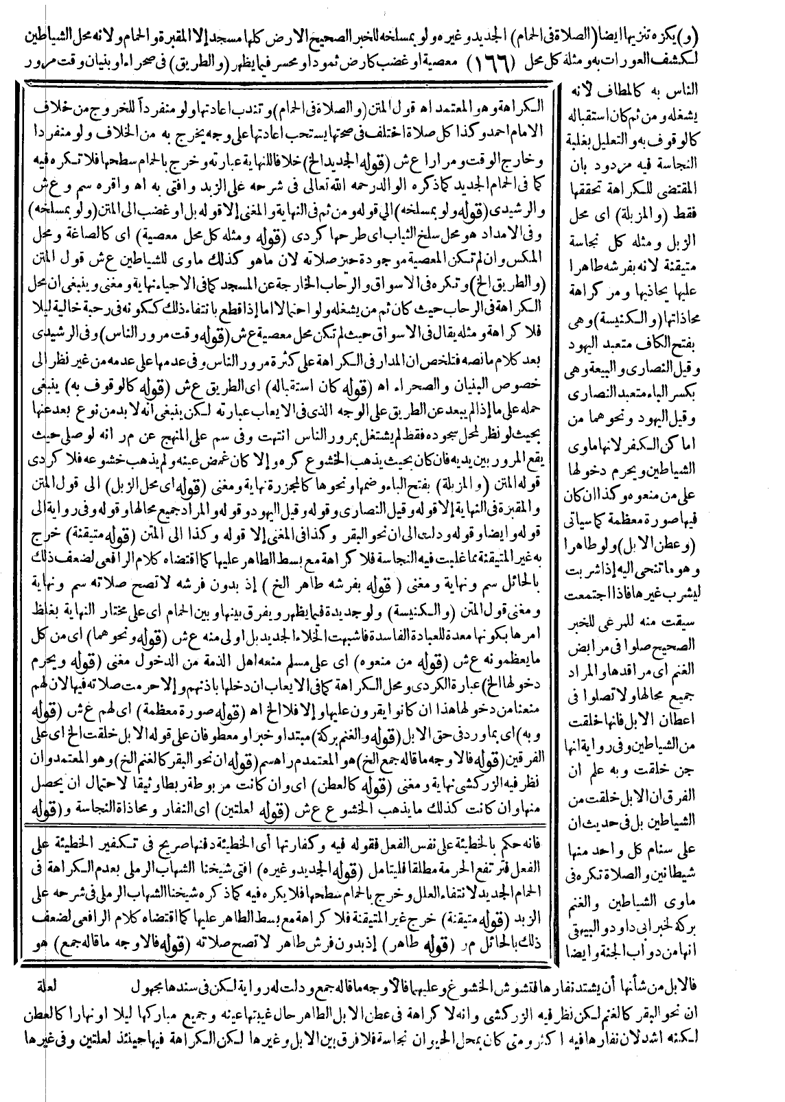 (قَوْلُهُ صُورَةٌ مُعَظَّمَةٌ) أَيْ لَهُمْ ع ش (قَوْلُهُ وَبِهِ) أَيْ بِمَا وَرَدَ فِي حَقِّ الْإِبِلِ (قَوْلُهُ وَالْغَنَمُ بَرَكَةٌ) مُبْتَدَأٌ وَخَبَرٌ أَوْ مَعْطُوفَانِ عَلَى قَوْلِهِ الْإِبِلُ خُلِقَتْ إلَخْ أَيْ عَلَى الْفَرْقَيْنِ (قَوْلُهُ فَالْأَوْجَهُ مَا قَالَهُ جَمْعٌ) هُوَ الْمُعْتَمَدُ م ر اهـ سم (قَوْلُهُ إنَّ نَحْوَ الْبَقَرِ كَالْغَنَمِ إلَخْ) وَهُوَ الْمُعْتَمَدُ وَإِنْ نَظَرَ فِيهِ الزَّرْكَشِيُّ نِهَايَةٌ وَمُغْنِي (قَوْلُهُ كَالْعَطَنِ) أَيْ وَإِنْ كَانَتْ مَرْبُوطَةً رَبْطًا وَثِيقًا لِاحْتِمَالِ أَنْ يَحْصُلَ مِنْهَا وَإِنْ كَانَتْ كَذَلِكَ مَا يَذْهَبُ الْخُشُوعُ ع ش (قَوْلُهُ لِعِلَّتَيْنِ) أَيْ النِّفَارِ وَمُحَاذَاةِ النَّجَاسَةِ وَ (قَوْلُهُ
