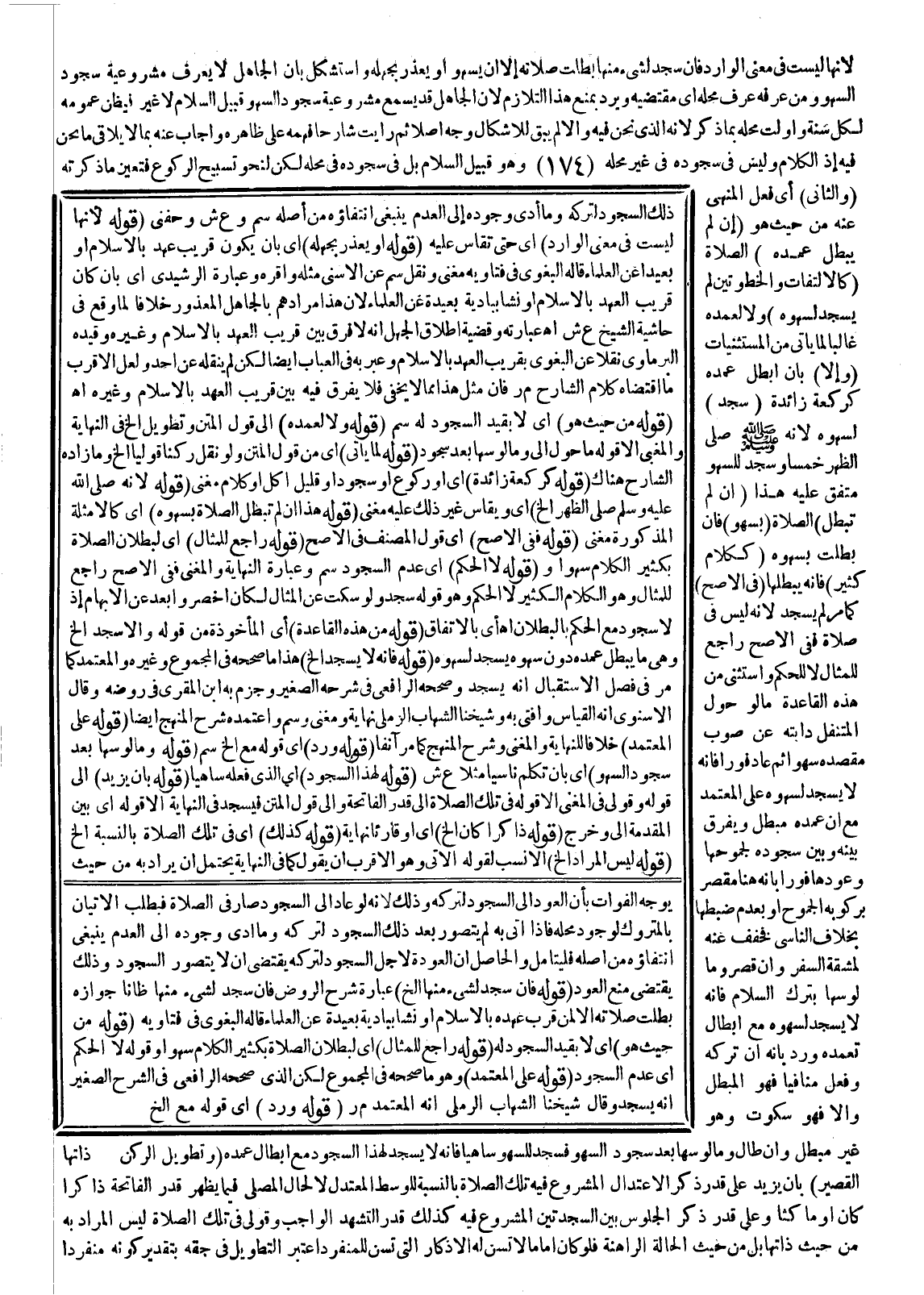 وَاسْتُثْنِيَ مِنْ هَذِهِ الْقَاعِدَةِ مَا لَوْ حَوَّلَ الْمُتَنَفِّلُ دَابَّتَهُ عَنْ صَوْبِ مَقْصِدِهِ سَهْوًا ثُمَّ عَادَ فَوْرًا فَإِنَّهُ لَا يَسْجُدُ لِسَهْوِهِ عَلَى الْمُعْتَمَدِ مَعَ أَنَّ عَمْدَهُ مُبْطِلٌ وَيُفَرَّقُ بَيْنَهُ وَبَيْنَ سُجُودِهِ لِجُمُوحِهَا وَعَوْدِهَا فَوْرًا بِأَنَّهُ هُنَا مُقَصِّرٌ بِرُكُوبِهِ الْجَمُوحَ أَوْ بِعَدَمِ ضَبْطِهَا بِخِلَافِ النَّاسِي فَخُفِّفَ عَنْهُ لِمَشَقَّةِ السَّفَرِ، وَإِنْ قَصَّرَ وَمَا لَوْ سَهَا بِتَرْكِ السَّلَامِ فَإِنَّهُ لَا يَسْجُدُ لِسَهْوِهِ مَعَ إبْطَالِ تَعَمُّدِهِ وَرُدَّ بِأَنَّهُ إنْ تَرَكَهُ وَفَعَلَ مُنَافِيًا فَهُوَ الْمُبْطِلُ وَإِلَّا فَهُوَ سُكُوتٌ وَهُوَ غَيْرُ مُبْطِلٍ، وَإِنْ طَالَ وَمَا لَوْ سَهَا بَعْدَ سُجُودِ السَّهْوِ فَسَجَدَ لِلسَّهْوِ سَاهِيًا فَإِنَّهُ لَا يَسْجُدُ لِهَذَا السُّجُودِ مَعَ إبْطَالِ عَمْدِهِ (وَتَطْوِيلُ الرُّكْنِ الْقَصِيرِ) بِأَنْ يَزِيدَ عَلَى قَدْرِ ذِكْرِ الِاعْتِدَالِ الْمَشْرُوعِ فِيهِ فِي تِلْكَ الصَّلَاةِ بِالنِّسْبَةِ لِلْوَسَطِ الْمُعْتَدِلِ لَا لِحَالِ الْمُصَلِّي فِيمَا يَظْهَرُ قَدْرَ الْفَاتِحَةِ ذَاكِرًا كَانَ أَوْ سَاكِتًا وَعَلَى قَدْرِ ذِكْرِ الْجُلُوسِ بَيْنَ السَّجْدَتَيْنِ الْمَشْرُوعِ فِيهِ كَذَلِكَ قَدْرَ التَّشَهُّدِ الْوَاجِبِ وَقَوْلِي فِي تِلْكَ الصَّلَاةِ لَيْسَ الْمُرَادُ بِهِ مِنْ حَيْثُ ذَاتُهَا بَلْ مِنْ حَيْثُ الْحَالَةُ الرَّاهِنَةُ فَلَوْ كَانَ إمَامًا لَا تُسَنُّ لَهُ الْأَذْكَارُ الَّتِي تُسَنُّ لِلْمُنْفَرِدِ اُعْتُبِرَ التَّطْوِيلُ فِي حَقِّهِ بِتَقْدِيرِ كَوْنِهِ مُنْفَرِدًا
