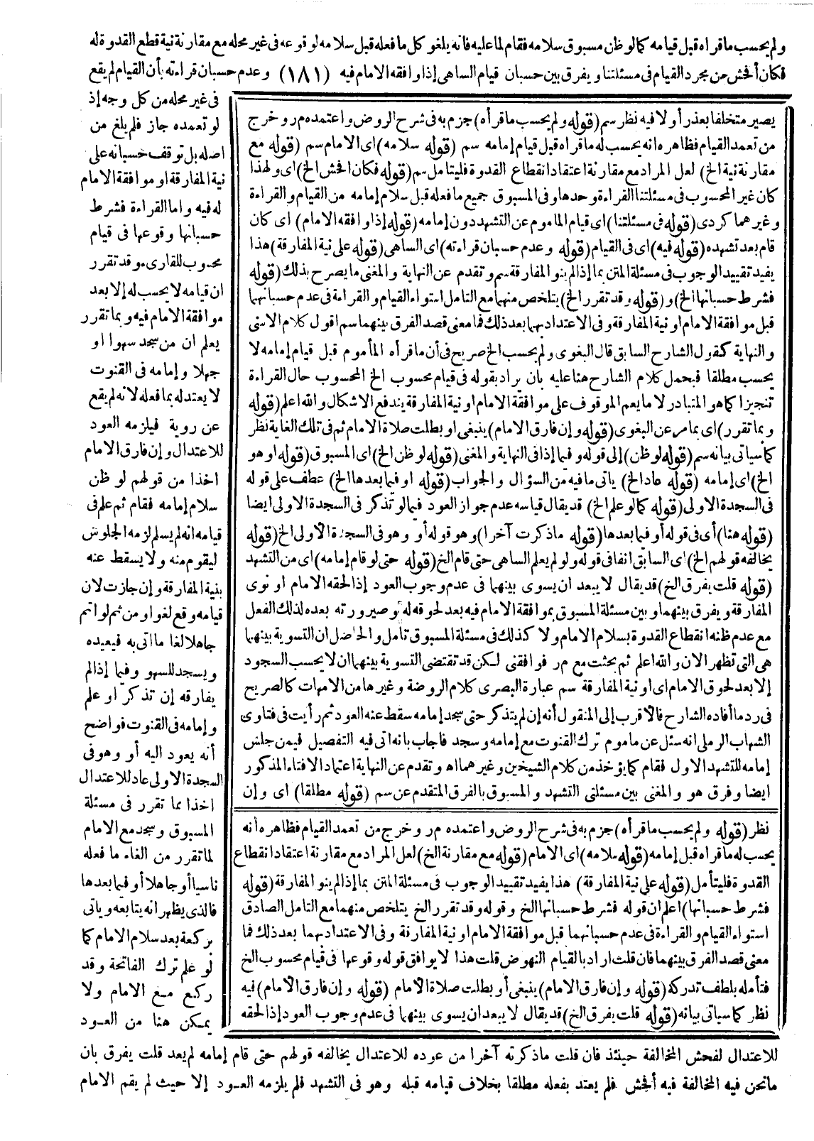 ـــــــــــــــــــــــــــــSنَظَرٌ (قَوْلُهُ: وَلَمْ يُحْسَبْ مَا قَرَأَهُ) جَزَمَ بِهِ فِي شَرْحِ الرَّوْضِ وَاعْتَمَدَهُ م ر وَخَرَجَ مَنْ تَعَمَّدَ الْقِيَامَ فَظَاهِرُهُ أَنَّهُ يُحْسَبُ لَهُ مَا قَرَأَهُ قَبْلَ إمَامِهِ (قَوْلُهُ: سَلَامَهُ) أَيْ: الْإِمَامِ (قَوْلُهُ: مَعَ مُقَارَنَةِ إلَخْ) لَعَلَّ الْمُرَادَ مَعَ مُقَارَنَةِ اعْتِقَادِ انْقِطَاعِ الْقُدْوَةِ، فَلْيُتَأَمَّلْ. (قَوْلُهُ: عَلَى نِيَّةِ الْمُفَارَقَةِ) هَذَا يُفِيدُ تَقْيِيدَ الْوُجُوبِ فِي مَسْأَلَةِ الْمَتْنِ بِمَا إذَا لَمْ يَنْوِ الْمُفَارَقَةَ (قَوْلُهُ: فَشَرْطُ حُسْبَانِهَا) اعْلَمْ أَنَّ قَوْلَهُ فَشَرْطُ حُسْبَانِهَا إلَخْ، وَقَوْلَهُ: وَقَدْ تَقَرَّرَ إلَخْ يَتَلَخَّصُ مِنْهَا مَعَ التَّأَمُّلِ الصَّادِقِ اسْتِوَاءُ الْقِيَامِ، وَالْقِرَاءَةِ فِي عَدَمِ حُسْبَانِهِمَا قَبْلَ مُوَافَقَةِ الْإِمَامِ أَوْ نِيَّةِ الْمُفَارَقَةِ، وَفِي الِاعْتِدَادِ بِهِمَا بَعْدَ ذَلِكَ فَمَا مَعْنَى قَصْدِ الْفَرْقِ بَيْنَهُمَا فَإِنْ قُلْتَ أَرَادَ بِالْقِيَامِ النُّهُوضَ قُلْتُ هَذَا لَا يُوَافِقُ قَوْلَهُ وُقُوعُهَا فِي قِيَامٍ مَحْسُوبٍ إلَخْ فَتَأَمَّلْهُ بِلُطْفٍ تُدْرِكْهُ (قَوْلُهُ: وَإِنْ فَارَقَ الْإِمَامَ) يَنْبَغِي، أَوْ بَطَلَتْ صَلَاةُ الْإِمَامِ (قَوْلُهُ: وَإِنْ فَارَقَ الْإِمَامَ) فِيهِ نَظَرٌ كَمَا سَيَأْتِي بَيَانُهُ (قَوْلُهُ: قُلْتُ يُفَرَّقُ إلَخْ) قَدْ يُقَالُ: لَا يَبْعُدُ أَنْ يُسَوَّى بَيْنَهُمَا فِي عَدَمِ وُجُوبِ الْعَوْدِ إذَا لَحِقَهُ