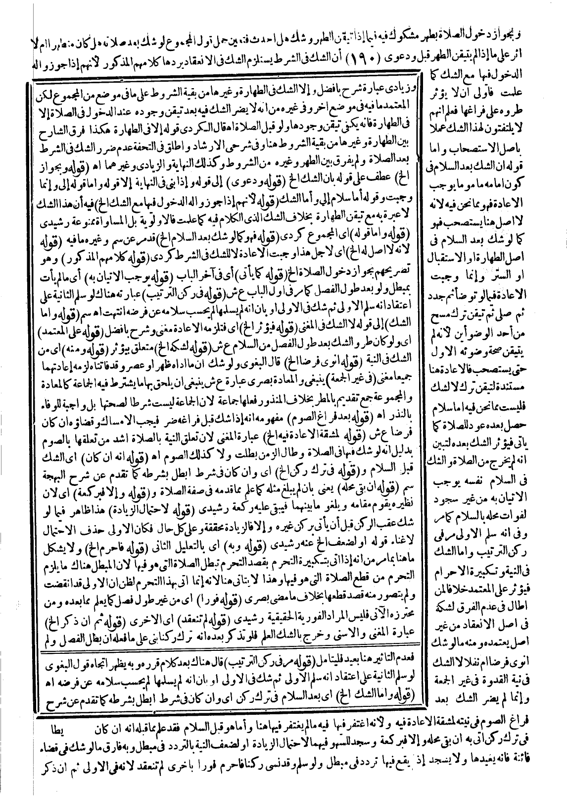 ـــــــــــــــــــــــــــــQوَزِيَادِيٌّ عِبَارَةُ شَرْحِ بَافَضْلٍ وَإِلَّا الشَّكَّ فِي الطَّهَارَةِ وَغَيْرِهَا مِنْ بَقِيَّةِ الشُّرُوطِ عَلَى مَا فِي مَوْضِعٍ مِنْ الْمَجْمُوعِ لَكِنَّ الْمُعْتَمَدَ مَا فِيهِ فِي مَوْضِعٍ آخَرَ وَفِي غَيْرِهِ مِنْ أَنَّهُ لَا يَضُرُّ الشَّكُّ فِيهِ بَعْدَ تَيَقُّنِ وُجُودِهِ عِنْدَ الدُّخُولِ فِي الصَّلَاةِ إلَّا فِي الطَّهَارَةِ فَإِنَّهُ يَكْفِي تَيَقُّنُ وُجُودِهَا وَلَوْ قَبْلَ الصَّلَاةِ اهـ. قَالَ الْكُرْدِيُّ قَوْلُهُ إلَّا فِي الطَّهَارَةِ هَكَذَا فَرَّقَ الشَّارِحِ بَيْنَ الطَّهَارَةِ وَغَيْرِهَا مِنْ بَقِيَّةِ الشُّرُوطِ هُنَا وَفِي شَرْحَيْ الْإِرْشَادِ وَأَطْلَقَ فِي التُّحْفَةِ عَدَمَ ضَرَرِ الشَّكِّ فِي الشَّرْطِ بَعْدَ الصَّلَاةِ وَلَمْ يُفَرِّقْ بَيْنَ الطُّهْرِ وَغَيْرِهِ مِنْ الشُّرُوطِ وَكَذَلِكَ النِّهَايَةُ وَالزِّيَادِيُّ وَغَيْرُهُمَا اهـ.