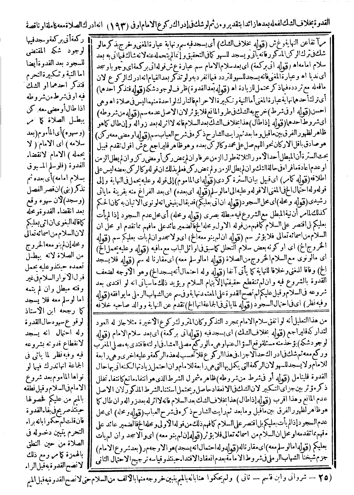 وَعَلَيْهِ يُحْمَلُ قَوْلُ الْأَنْوَارِ السَّلَامُ فِي غَيْرِ وَقْتِهِ مُبْطِلٌ وَإِنْ لَمْ يُتِمَّهُ أَمَّا لَوْ سَلَّمَ مَعَهُ فَلَا يَسْجُدُ كَمَا رَجَّحَهُ ابْنُ الْأُسْتَاذِ لِوُقُوعِ سَهْوِهِ حَالَ الْقُدْوَةِ وَلَهُ احْتِمَالٌ أَنَّهُ يَسْجُدُ لِانْقِطَاعِ قُدْوَتِهِ بِشُرُوعِهِ فِيهِ وَفِيهِ نَظَرٌ لِمَا يَأْتِي فِي الْجَمَاعَةِ أَنَّهَا تُدْرَكُ فِيمَا لَوْ نَوَاهَا الْمَأْمُومُ بَعْدَ شُرُوعِ الْإِمَامِ فِي السَّلَامِ وَقَبْلَ نُطْقِهِ بِالْمِيمِ مِنْ عَلَيْكُمْ فَحُصُولُهَا حِينَئِذٍ صَرِيحٌ فِي بَقَاءِ الْقُدْوَةِ فَإِنْ قُلْتَ لِمَ حَكَمُوا بِأَنَّهُ بِرَاءِ التَّحَرُّمِ يَتَبَيَّنُ دُخُولُهُ فِي الصَّلَاةِ مِنْ حِينِ النُّطْقِ بِالْهَمْزَةِ كَمَا مَرَّ وَمَعَ ذَلِكَ لَا تَصِحُّ الْقُدْوَةُ بِهِ قَبْلَ الرَّاءِ وَلَمْ يَحْكُمُوا هُنَا بِأَنَّهُ بِالْمِيمِ يَتَبَيَّنُ خُرُوجُهُ مِنْهَا بِالْأَلِفِ مِنْ السَّلَامُ حَتَّى لَا تَصِحَّ الْقُدْوَةُ بِهِ قَبْلَ الْمِيمِ
